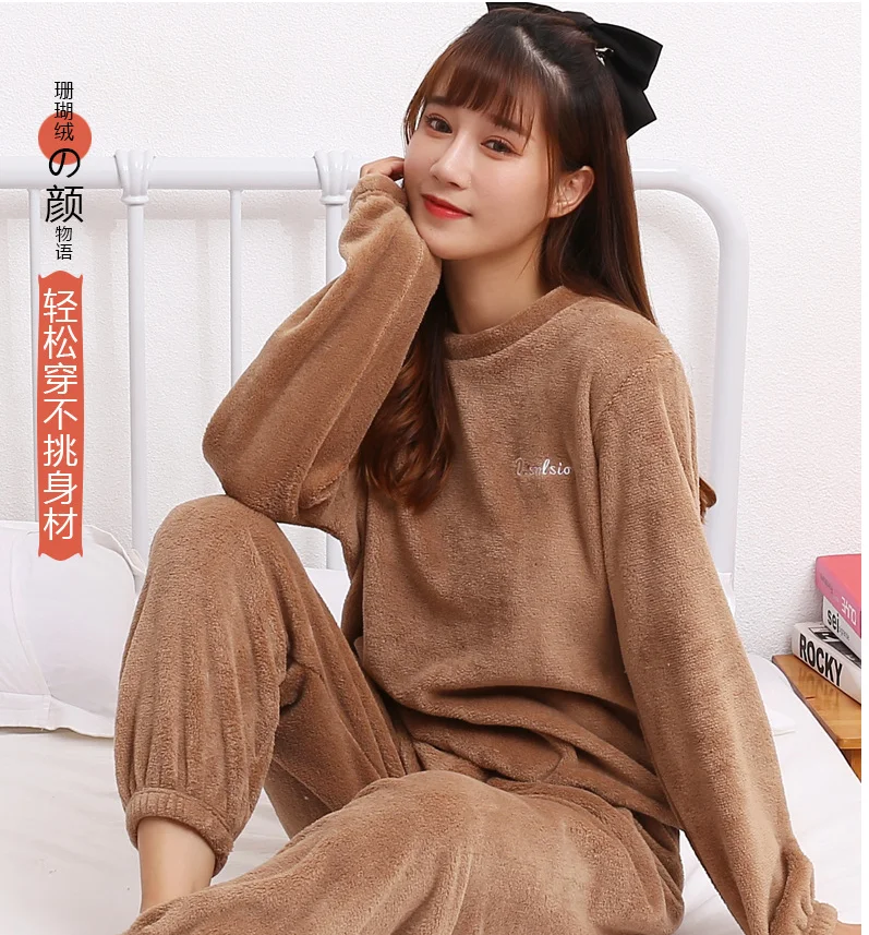 Новый осенне-зимний теплый комплект из брюк, плюшевая утепленная пижама из кораллового бархата, одежда для дома, свободное большое пальто для женщин, пижамы