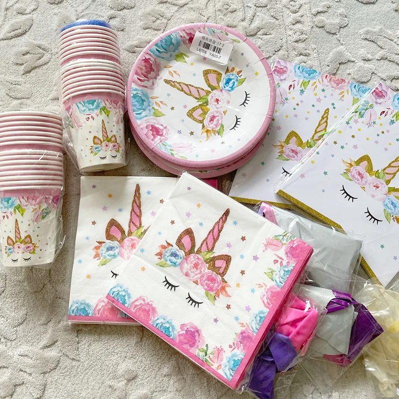 Единорог день рождения принадлежности одноразовый набор столовых пр...