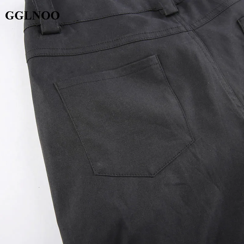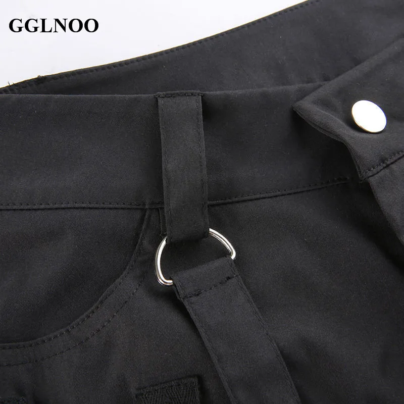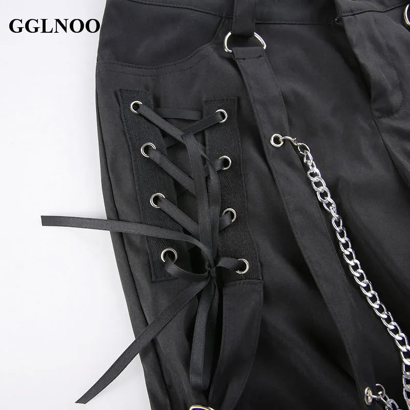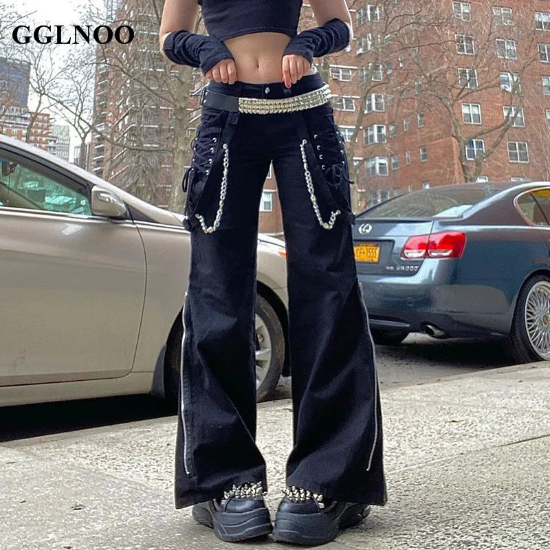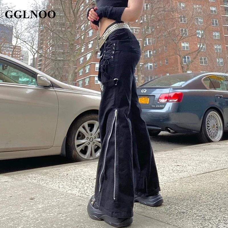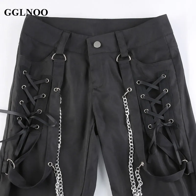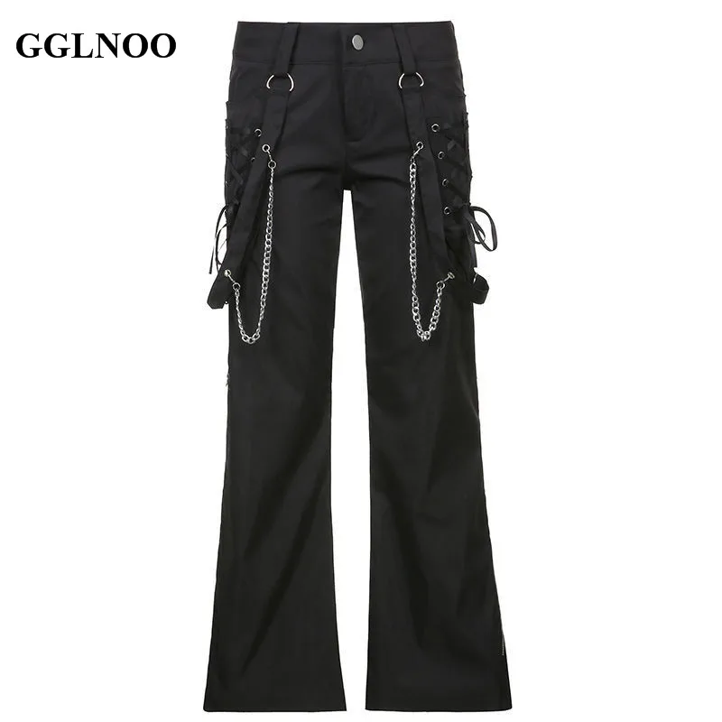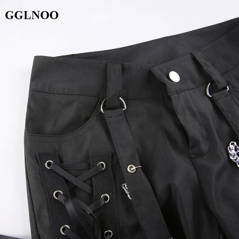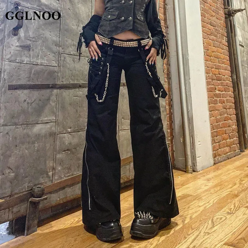 GGLNOO черные готические женские уличные брюки-карго с заниженной талией в стиле панк