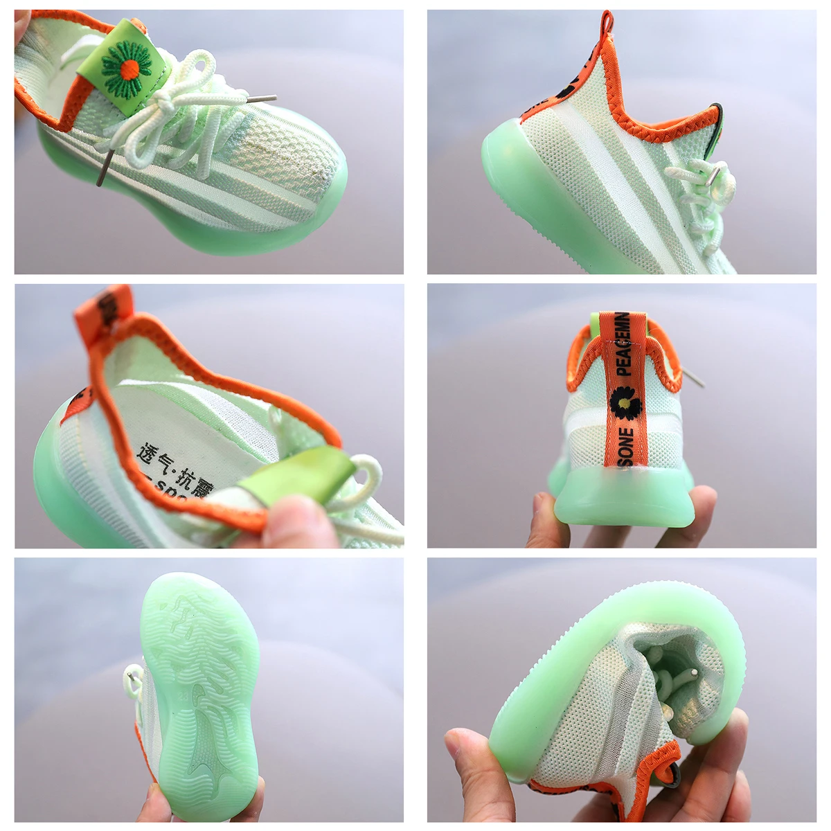 Светящиеся кроссовки для мальчиков и девочек, сетчатые дышащие туфл...