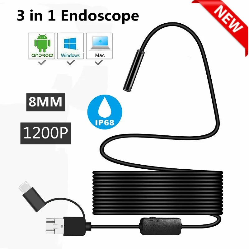 8 мм Мини эндоскоп камера 1200P 3 в 1 8 светодиодный IP68 Водонепроницаемый эндоскоп для автомобилей промышленный смартфон мини камера USB Type C