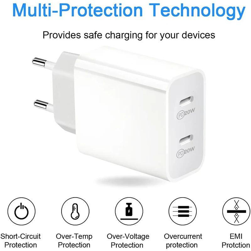 Быстрое зарядное устройство с двумя отверстиями, 20 Вт, PD, зарядны...