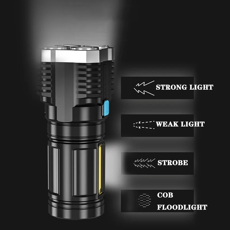 Светодиодный фонарь высокой мощности с четырьмя ячейками, посветильник светильник с COB матряркий, с зарядкой от USB, для кемпинга, светильник, фонарик мощный, фонарик аккумуляторный