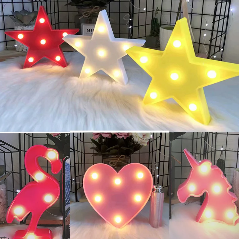 Светодиодный мини-ночник 12 см, Настольный светильник в виде животных, фламинго, звезды, сердца, единорога, Рождественская Кокосовая елка, украшение для домашвечерние, настольная лампа 3D