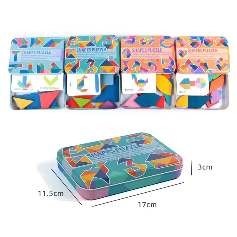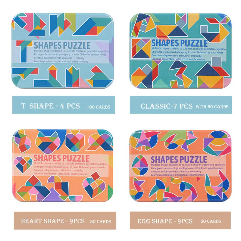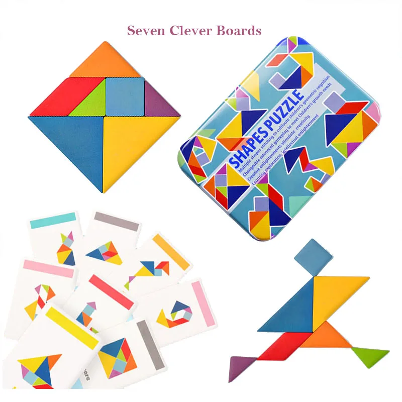 Детские деревянные красочные Tangram головоломки игрушки карты железная коробка обучающая головоломка Когнитивное раннее образование головоломка подарок