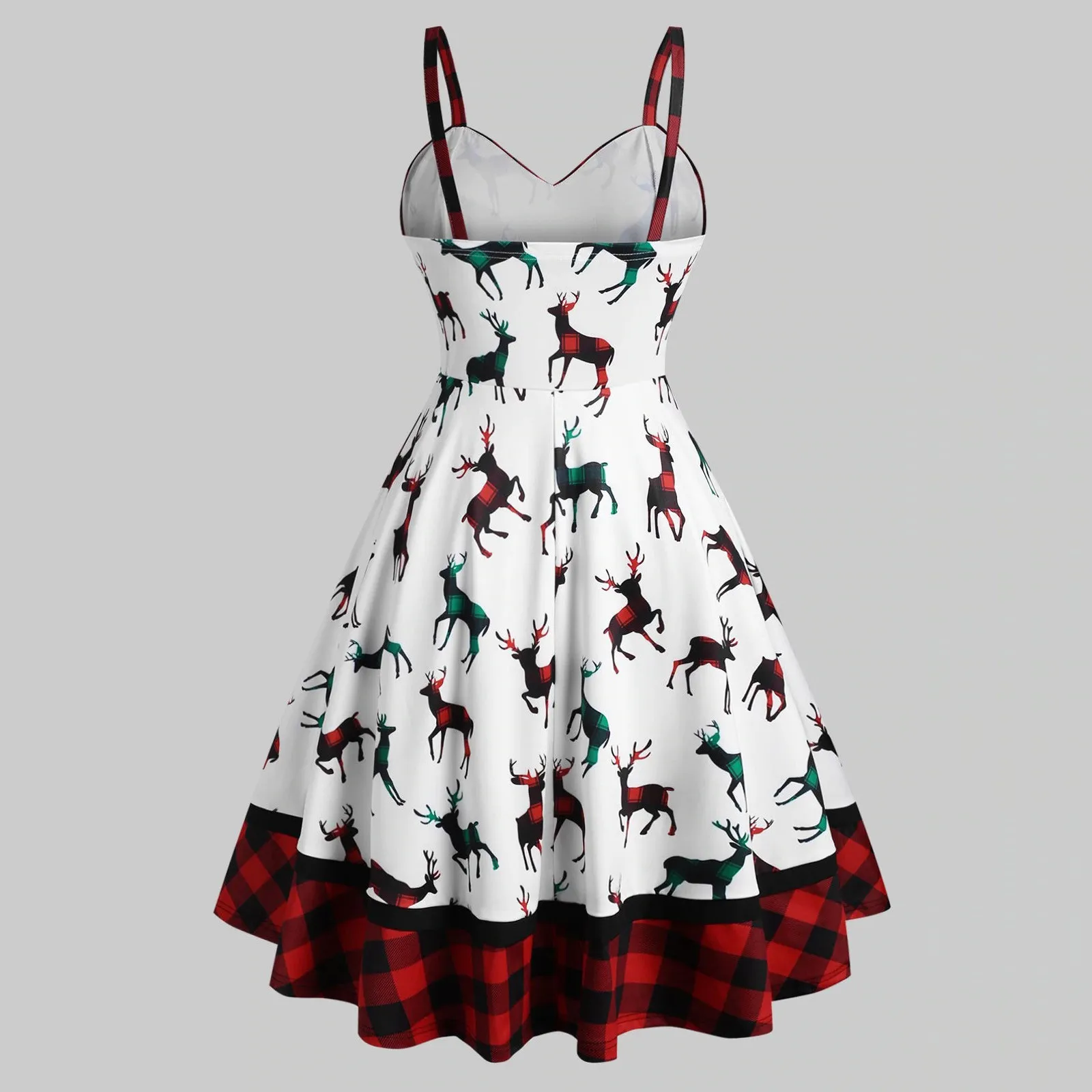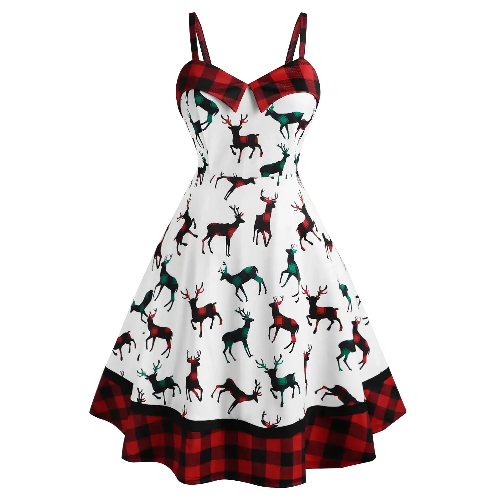 Особенности: с открытыми плечами, Рождественская клетка с изображением лося Принт, без рукавов, Винтаж, платье, рождественское платье, вечеринка Платье, макси платье, модное платье,Повседневная одежда; Стильный и модный дизайн