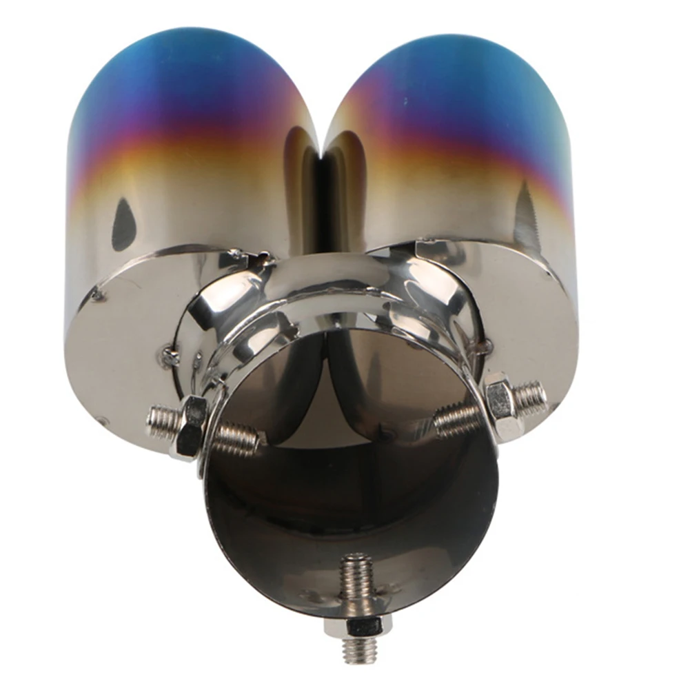 Двойной выход сгоревший синий выхлопной наконечник из нержавеющей стали Наклонный Свернутый КрайГлушитель для автомобиляУниверсальный