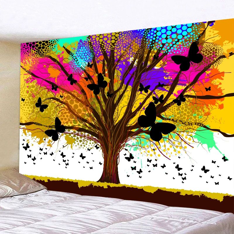 Психоделическая фотография для спальни, звездное небо, жизнь, дерево, настенная подвеска, хиппи, бабочки, гобелены, ткань, украшение для дома
