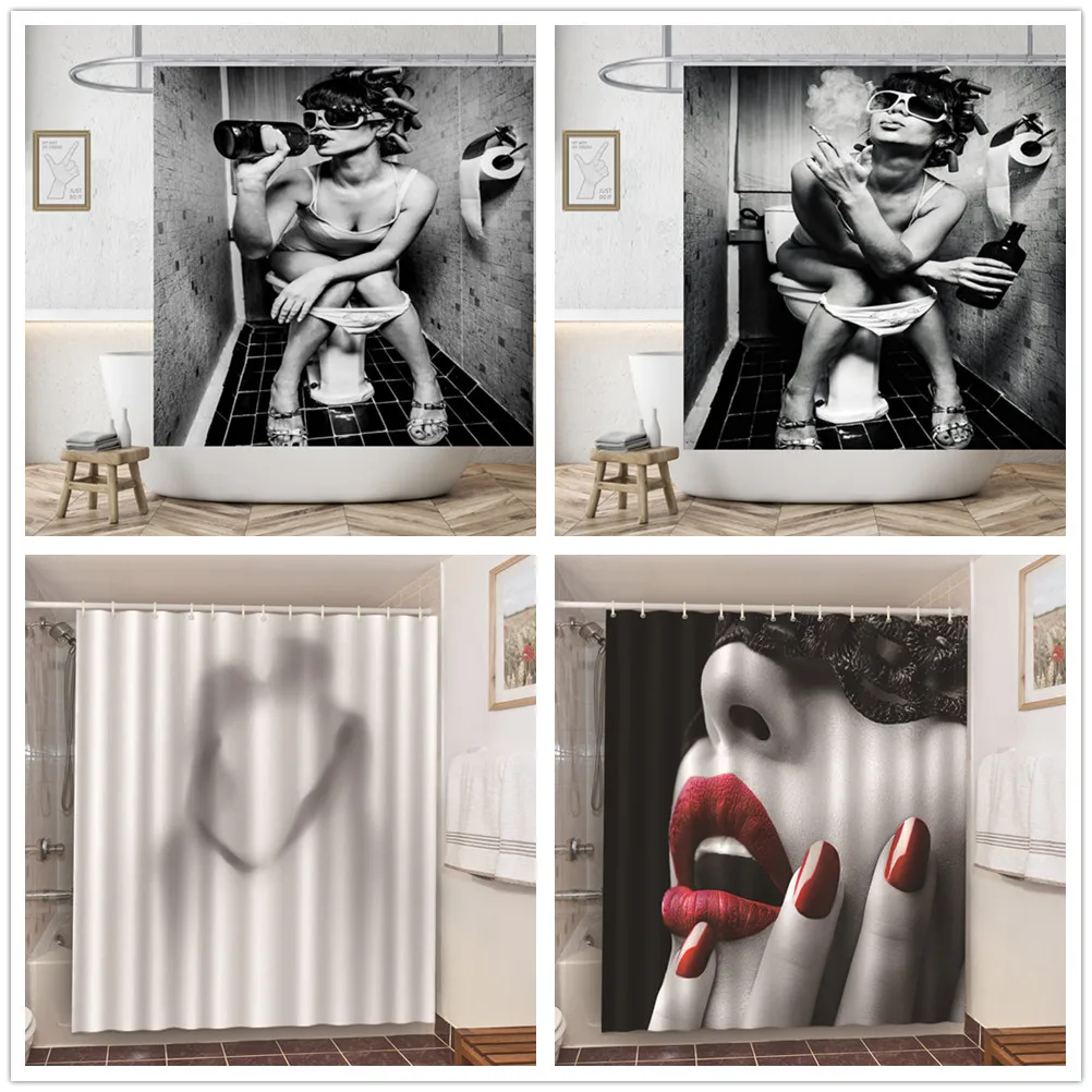 Занавеска для душа с узором для туалета и девушки, Высококачественная водонепроницаемая ткань, украшение для ванной комнаты, шторы для ванной с сексуальными губами, моющийся Декор