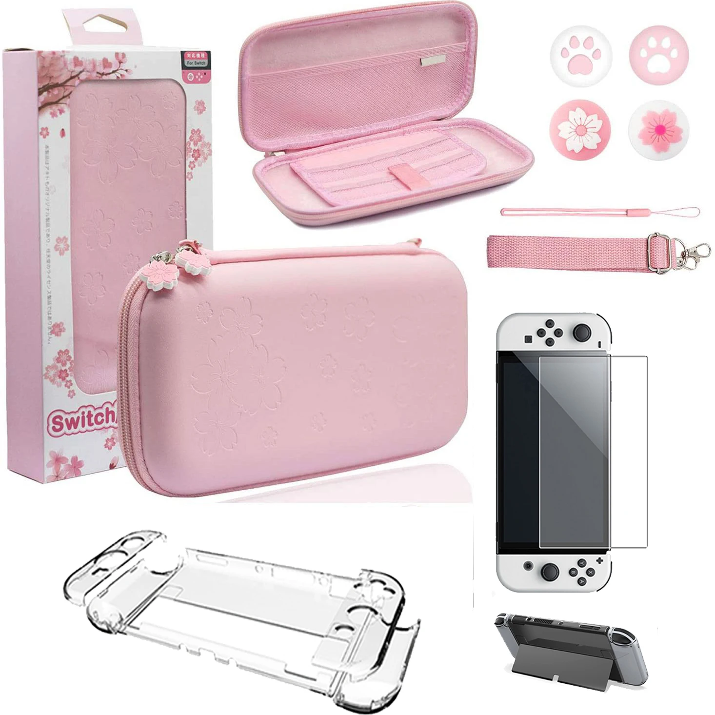 Переключатель Oled розового цвета чехол для переноски Сакура сумка Защитная консоль Прозрачная крышка комплект водонепроницаемый защитный экран ремешок на запястье и плечо
