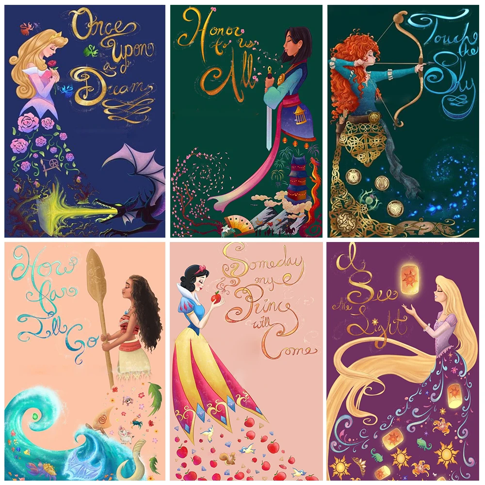 Алмазная 5D картина сделай сам Disney, квадратнаякруглая Принцесса ...