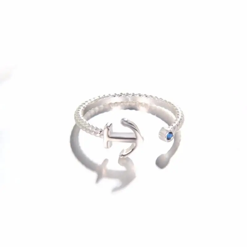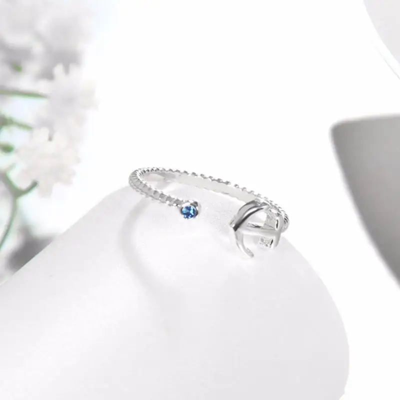 Модное женское кольцо с голубым кристаллом, кольцо с якорем, ювелирные изделия, регулируемое кольцо для девушки вечерние на День святого Валентина