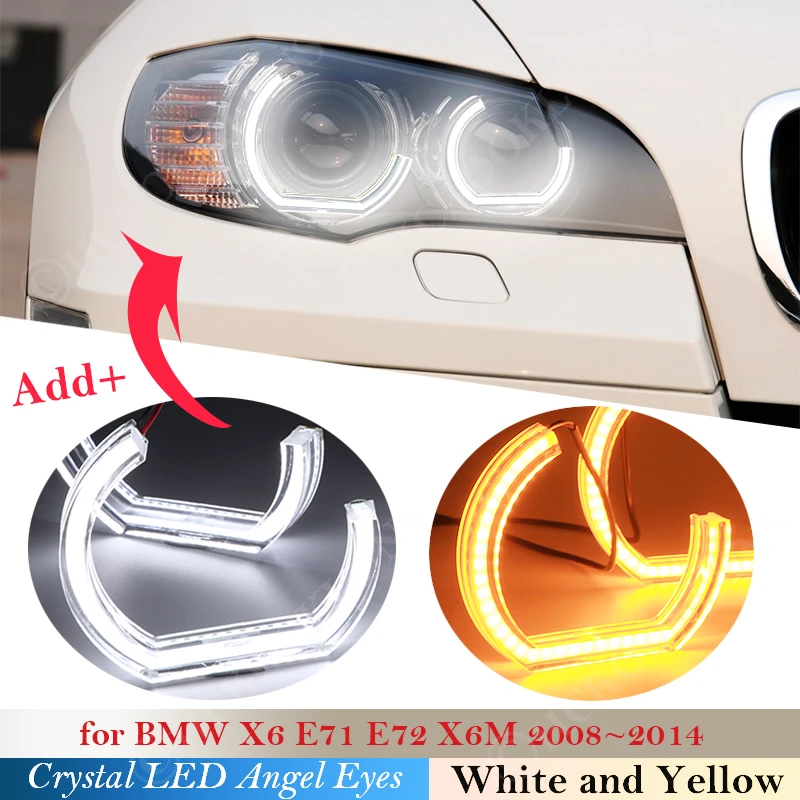 Кристальные светодиодсветодиодный глаза ангела DTM стиль гало кольца свет наборы для BMW X6 E71 E72 X6M 2008 2014 поворотный сигнал 2013 2012 2011