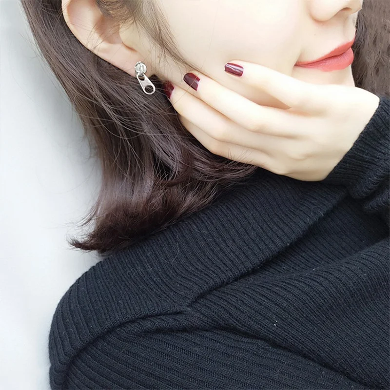 Индивидуальные крутые металлические серьги-гвоздики на молнии для м...