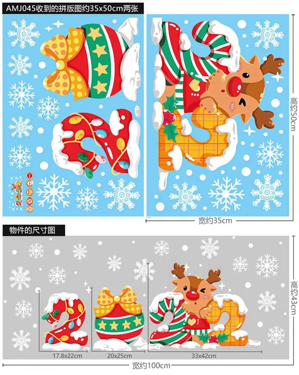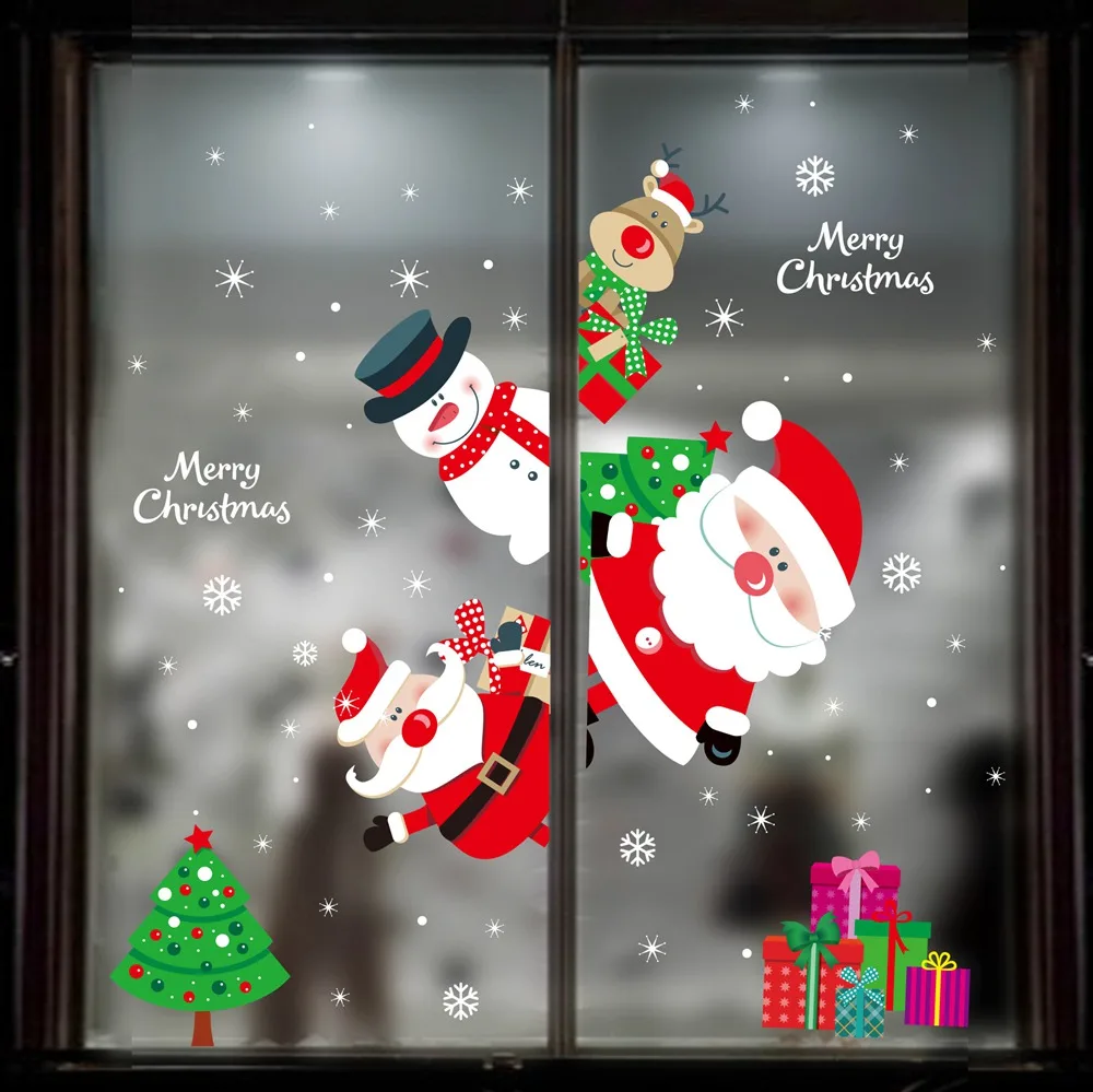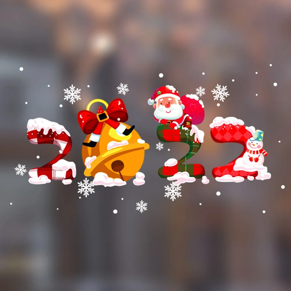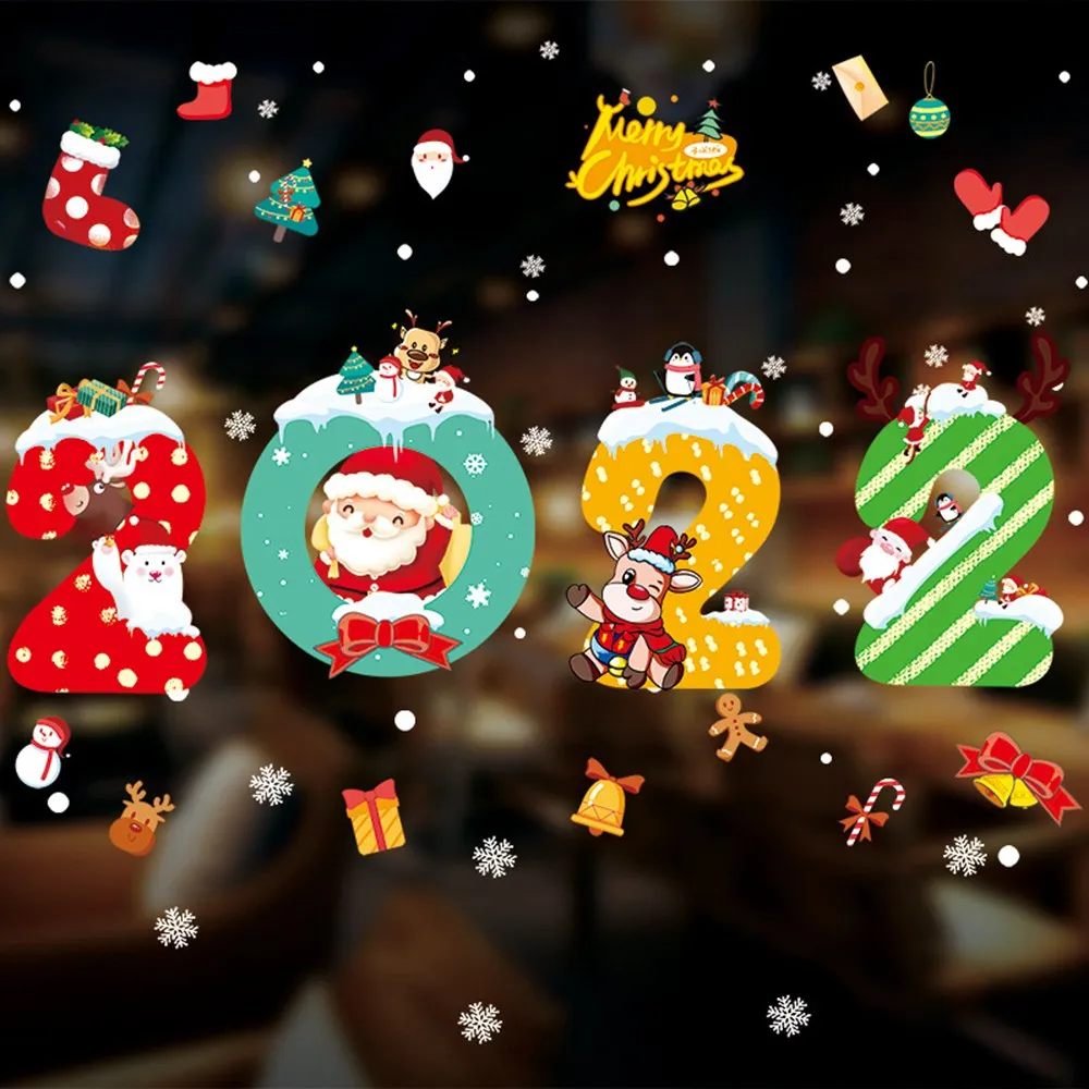 Новогодние наклейки на окно Съемные ПВХ Настенные стикеры рождественские украшения для дома детская комната настенные наклейки 2022 новый год