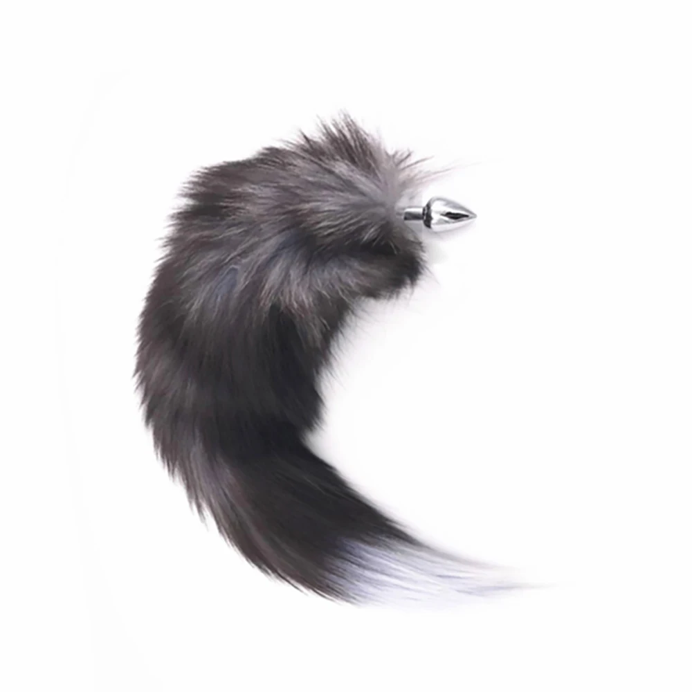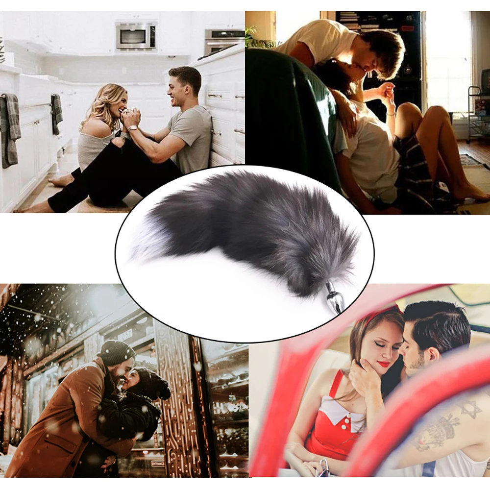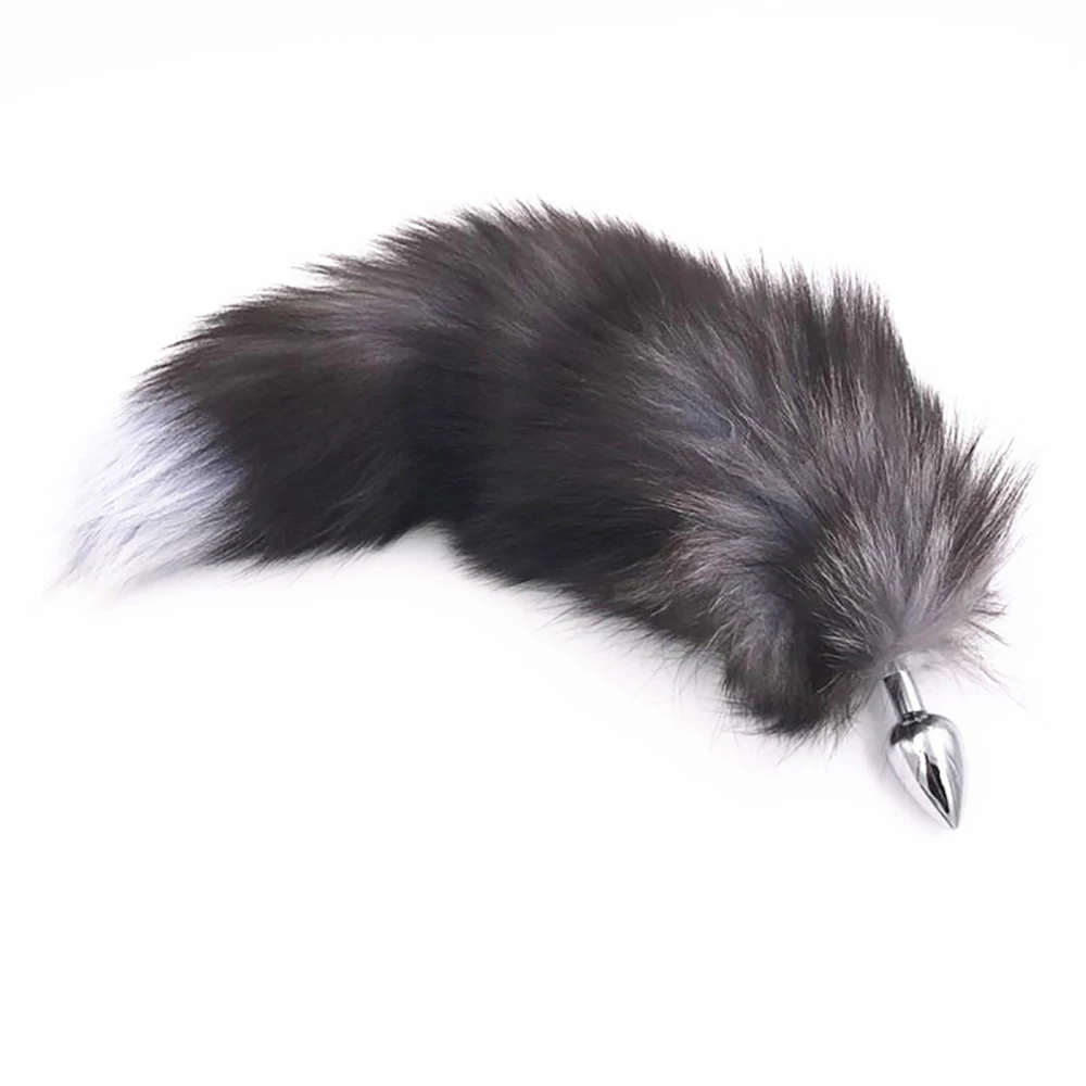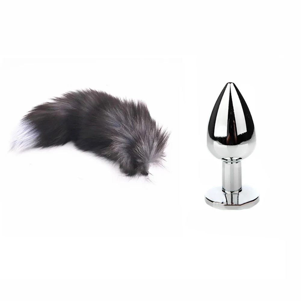 Анальная пробка среднего размера, лисий хвост, металлическая, для м...