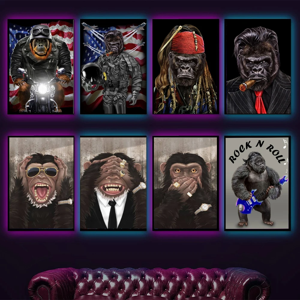 Художественный постер с изображением обезьяны орангутанга, шимпанзе...