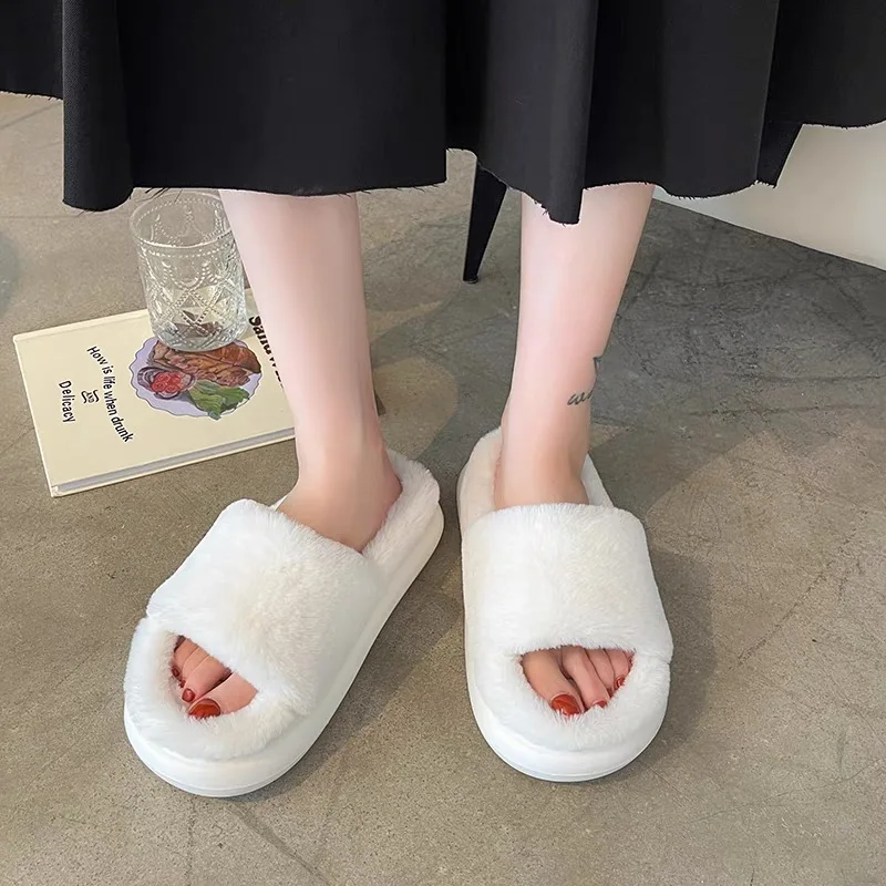 Женские зимние пушистые тапочки из искусственного меха на платформе домашняя обувь на толстой подошве теплая плюшевая удобная обувь для дома мужская женская обувь