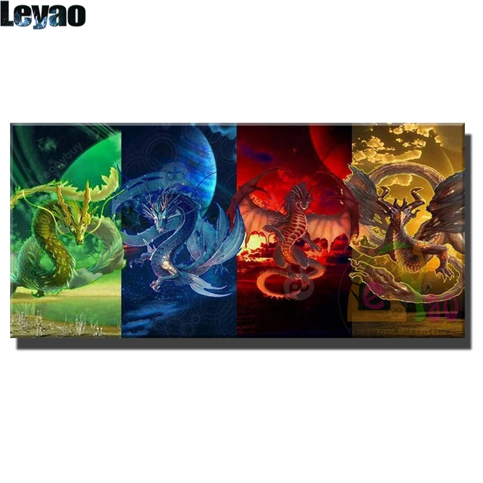 Алмазная мозаика драконов, четыре цвета, круглая Алмазная картина, алмазная вышивка, Набор для вышивки крестиком, алмазные стразы, на Рождество
