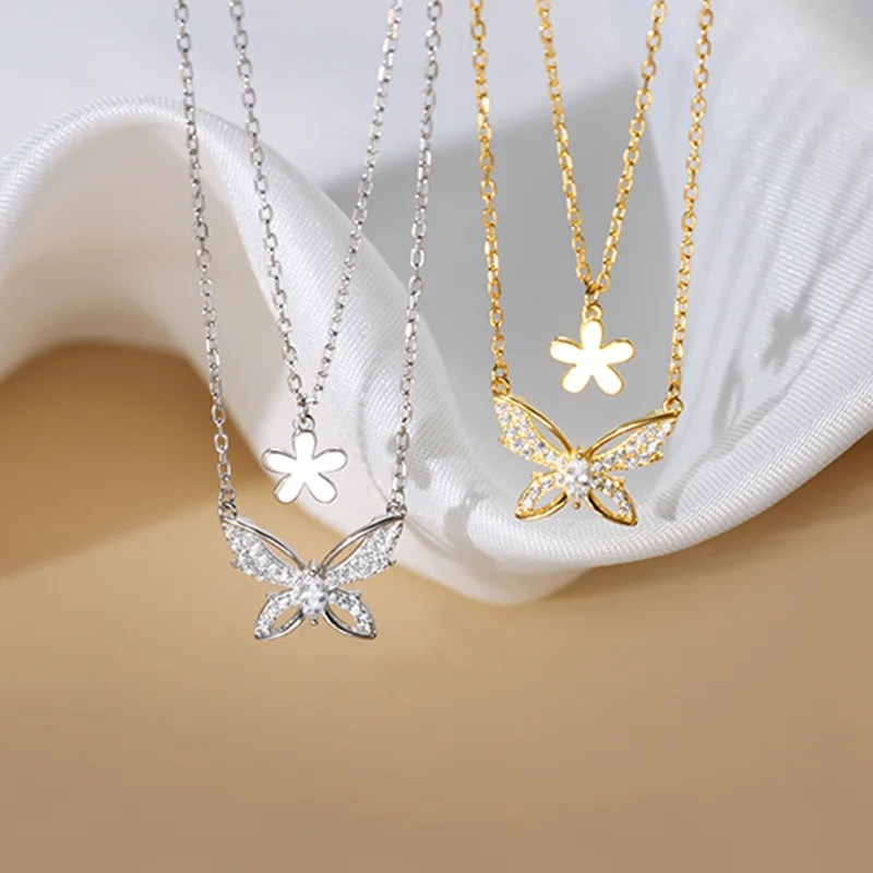 Женское серебряное ожерелье XIYANIKE с блестящими бриллиантами, бабочками и цветами, красивое Милое Свадебное украшение, аксессуары вечерние