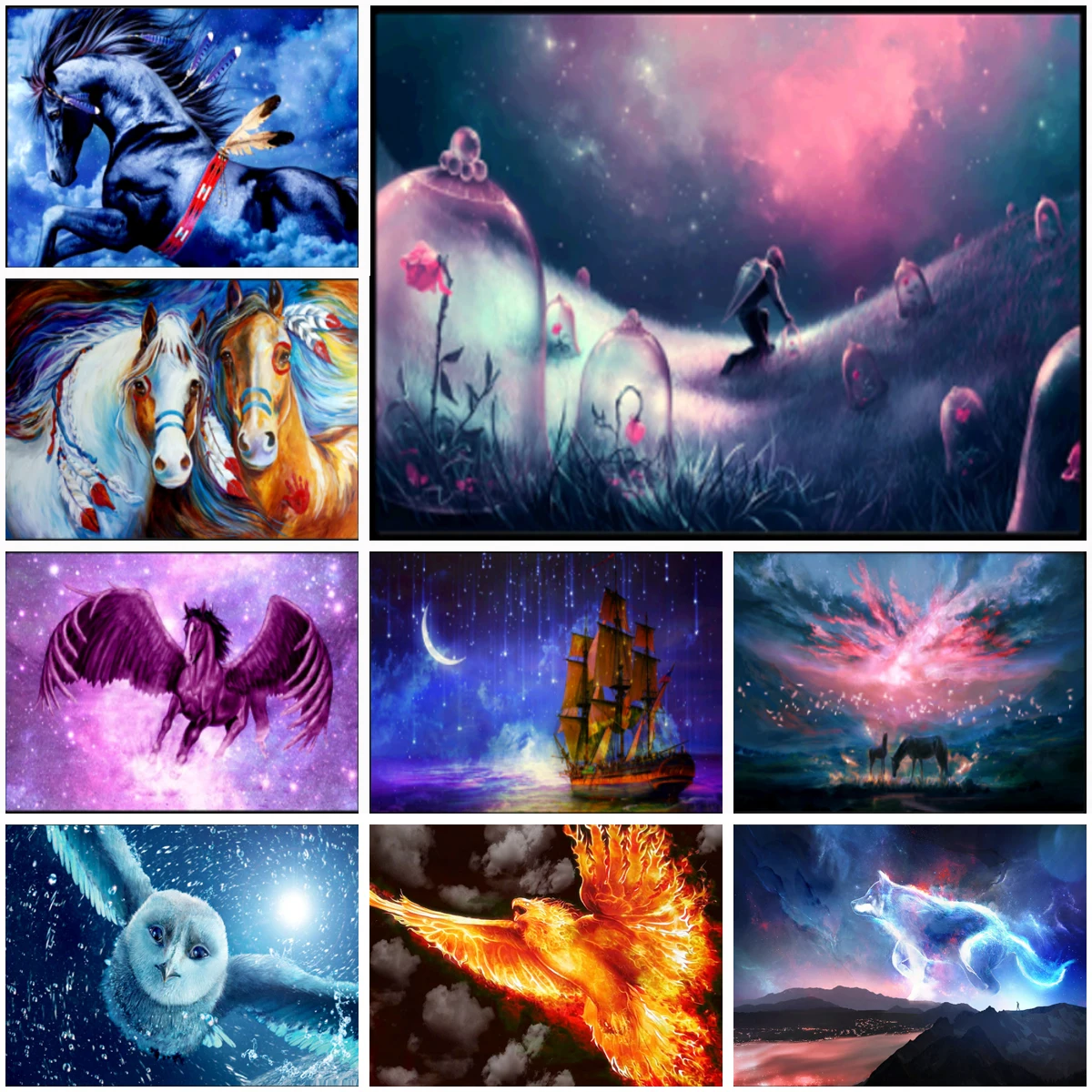 Алмазная 5D картина сделай сам, круглые животные, Пегас, пейзаж, вышивка крестиком, искусство стразы, вышивка, строительный подарок