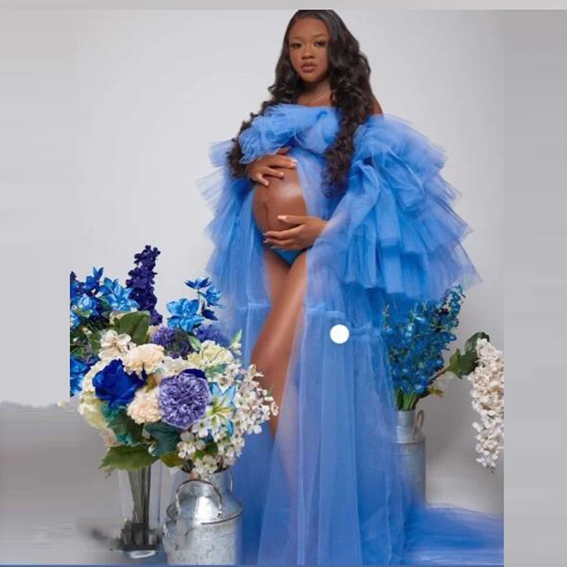 Aso Ebi африканские женские тюлевые платья с длинным рукавом женские платья на день рождения для фотосъемки прозрачный тюль вечернее платье