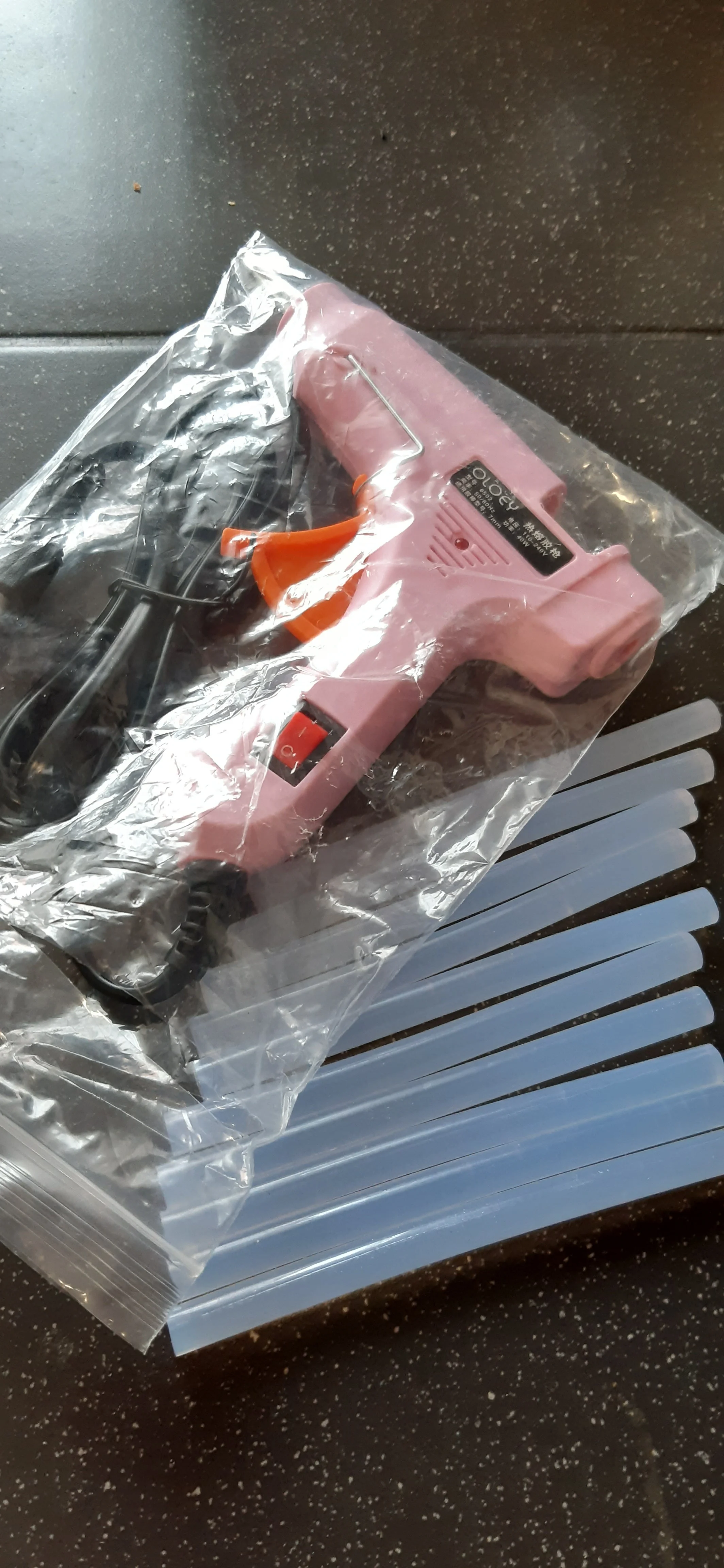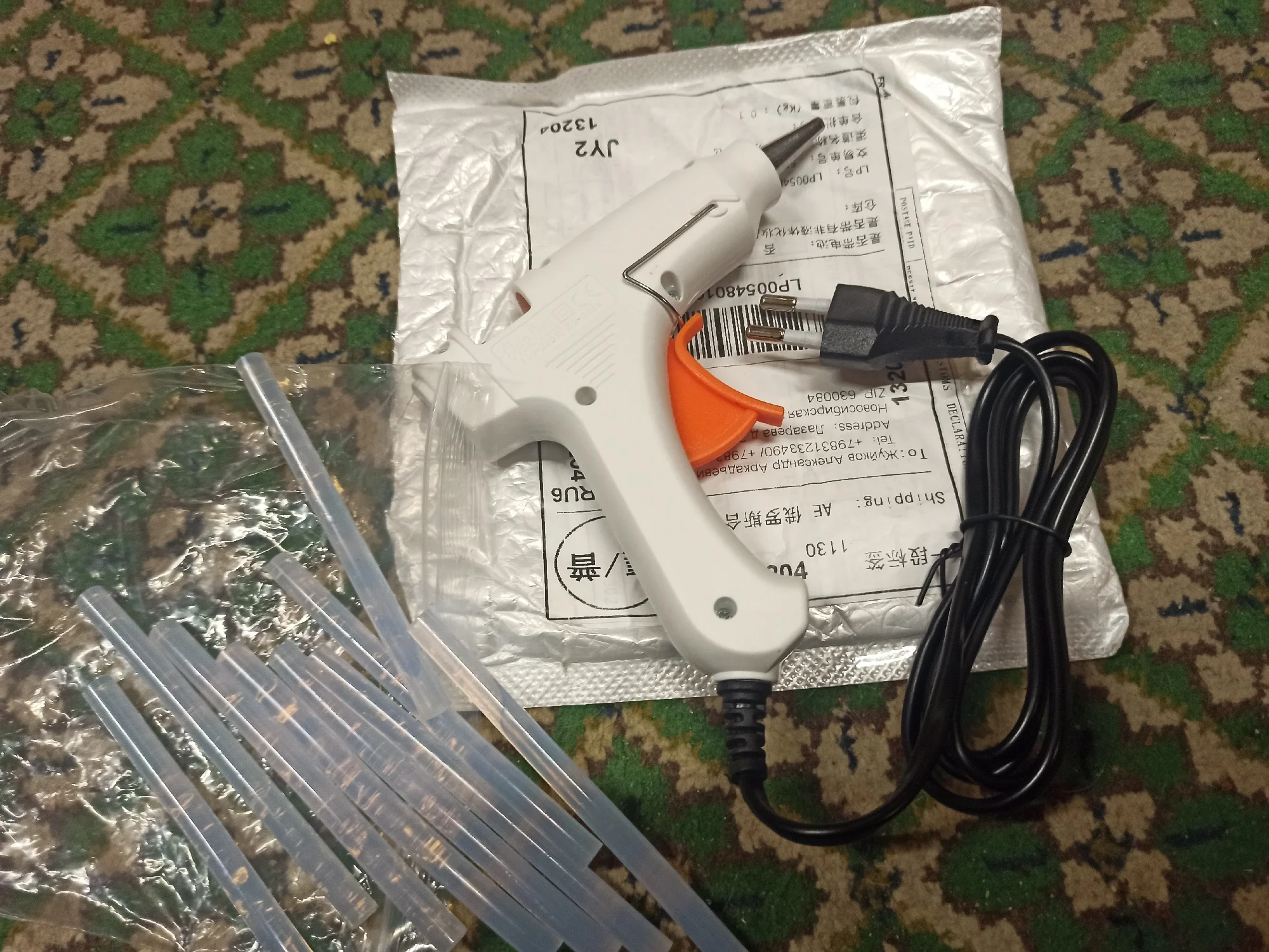 Клеевой пистолет красавец, пока не включал но думаю все будет отлично, заказывал 10 палочек клеевых, продавец положил 15,мне очень приятно. Спасибо продавцу. Заказ пришёл быстро.Продавца рекомендую.