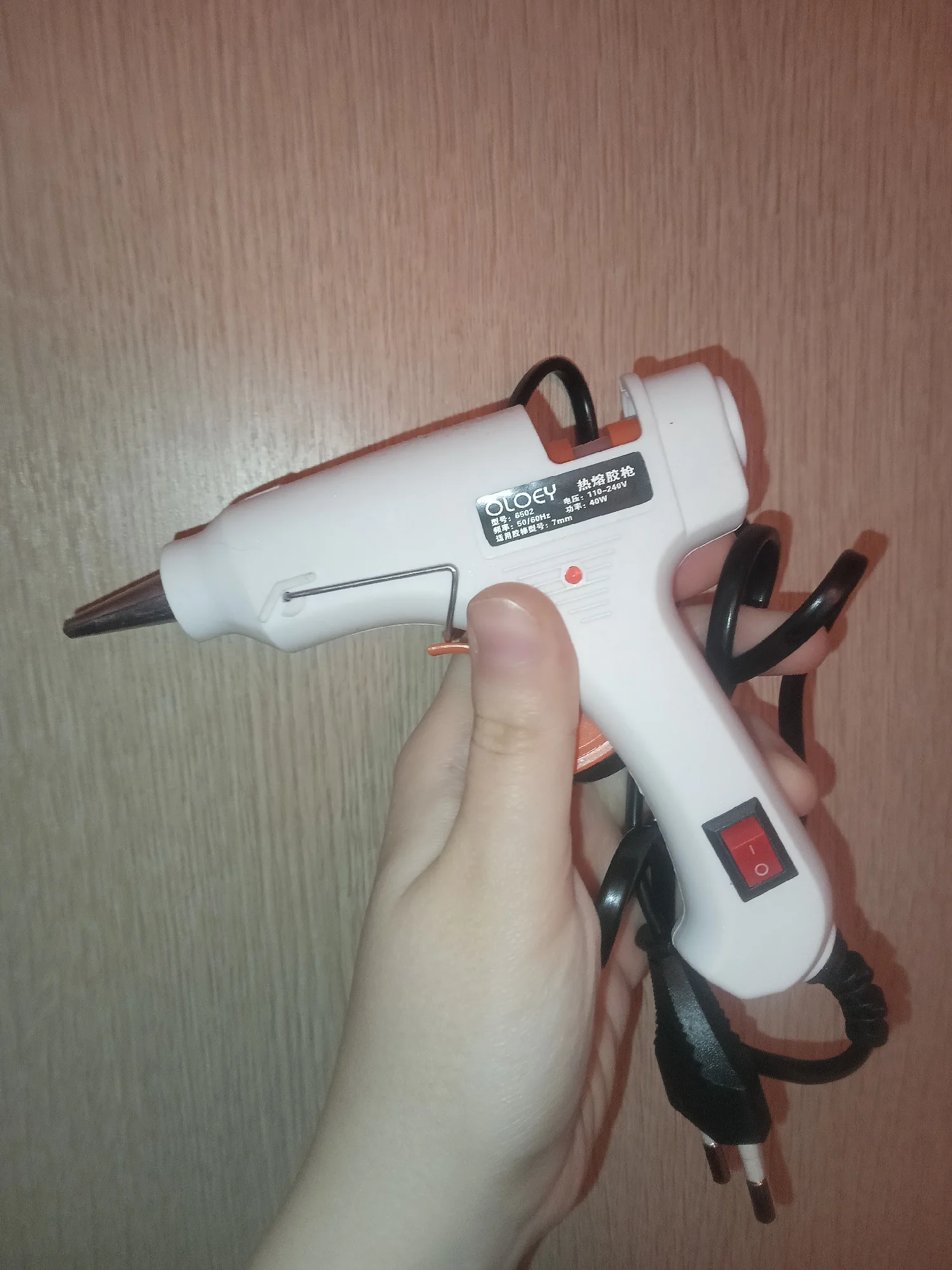 В общем сам пистолет не понравился. все как в описании. внешне выглядит плохо, как будто валялся долго без упаковки. есть запах пластика. кабель очень короткий на фото 1. наклейки приклеены криво и не надёжно фото 2. носик пистолета надо менять сильно течет. по режимам не понял есть ли в них смысл. использовал стержни которые прислал продавец. пистолет был готов к использованию уже через 2 минуты на максимальном режиме. остывает очень долго, может стержни такие. пистолет такой покупать не буду. что то сложно стало в выборе, используем дешёвые пистолеты купленные 7 лет назад по 200₽ (100Вт). лучше пока не нашел. Bosh пистолет есть, но уступает по скорости разогрева и эргономике моему старому пистолету...