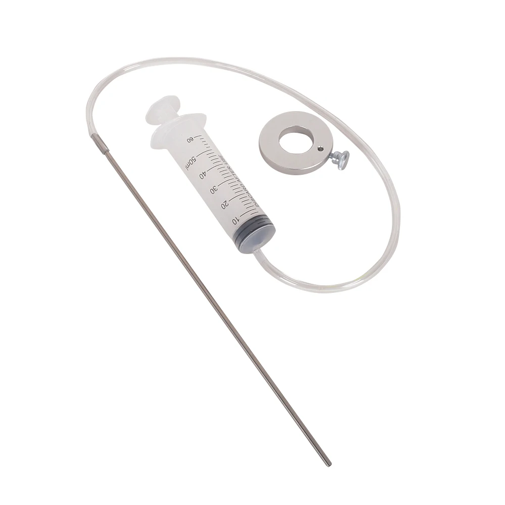 Этот инструмент для измерения уровня масла для вилок предназначен для проверки и регулировки уровня масла на всех обычных и однокамерных картриджей вилокШприц, который входит в этот комплект, имеет емкость 60 мл. Это также может быть использовано на велосипедах с передней подвеской.