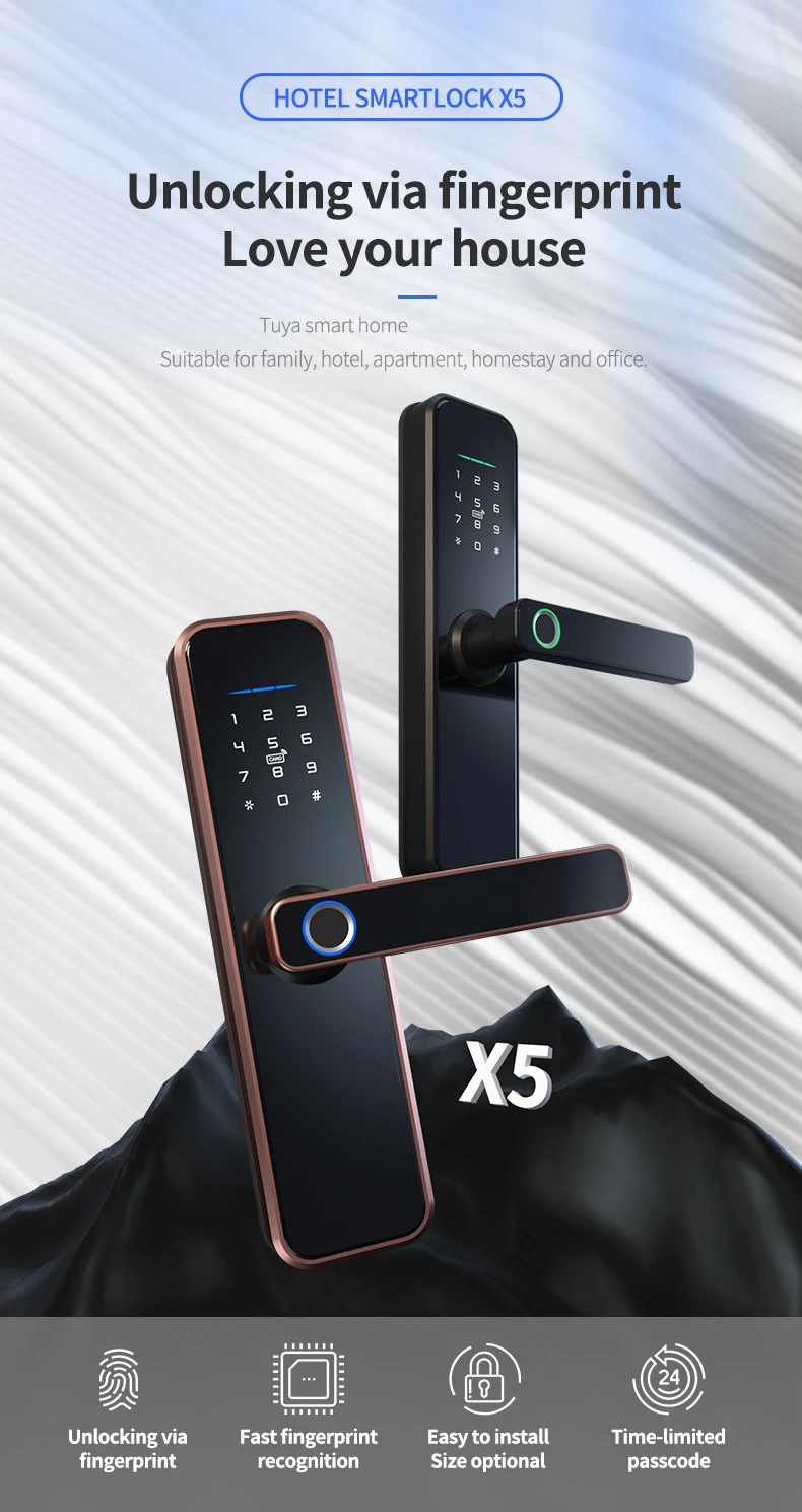 Дверной смарт-замок X5 с Биометрическим распознаванием отпечатков пальцев