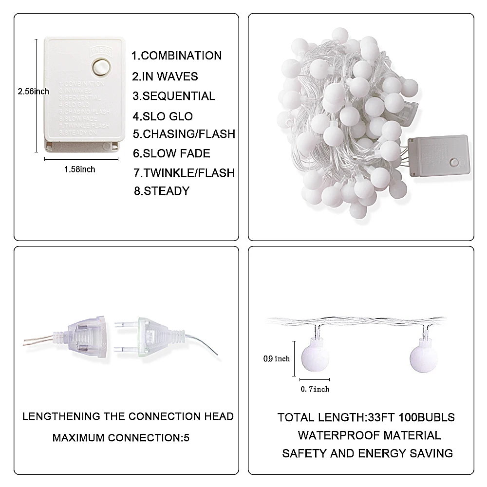 Описание соответствует и доставка быстрая и бесплатная до двери. Но ….. вместо 10 метров, мне пришла гирлянда 5 м и на одной лампочке нет колпачка
