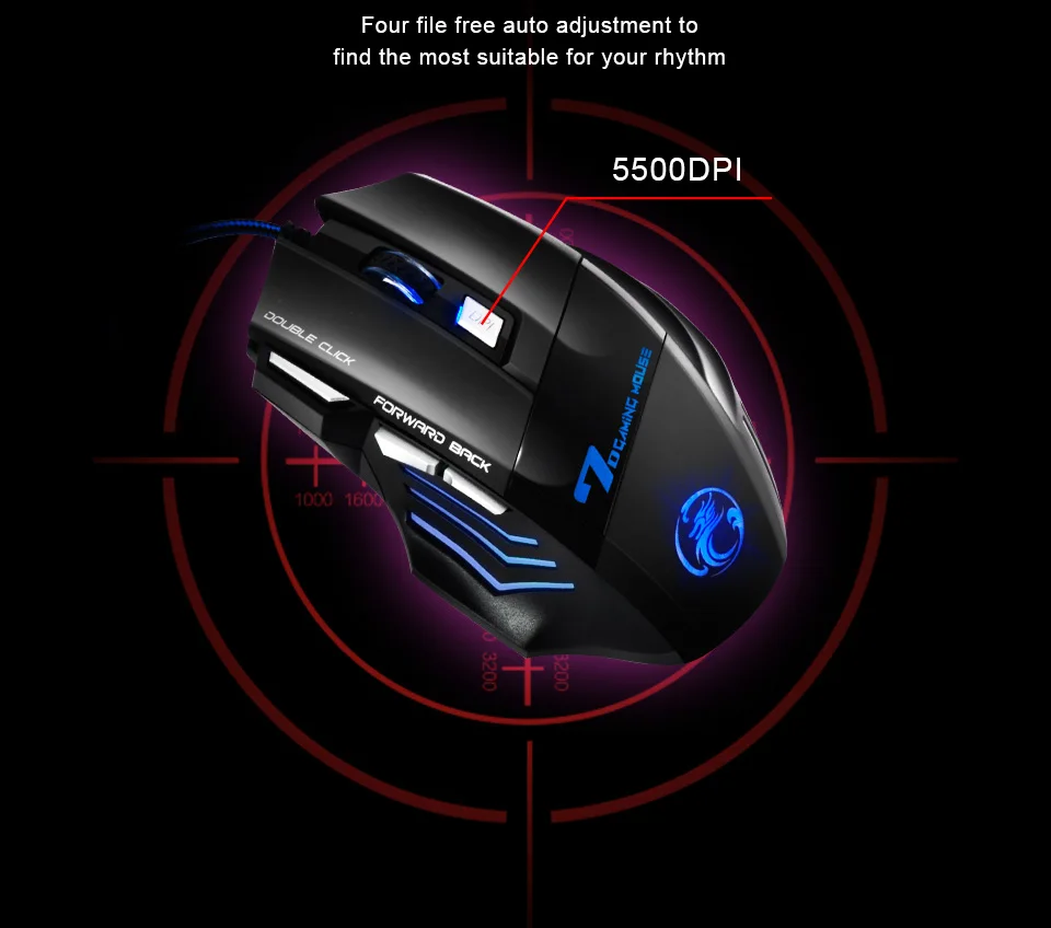 Эргономичная Проводная игровая мышь iMICE, светодиодная компьютерная мышь 5500 DPI с 7 кнопками, геймерская мышь X7 с подсветкой для ПК и ноутбука