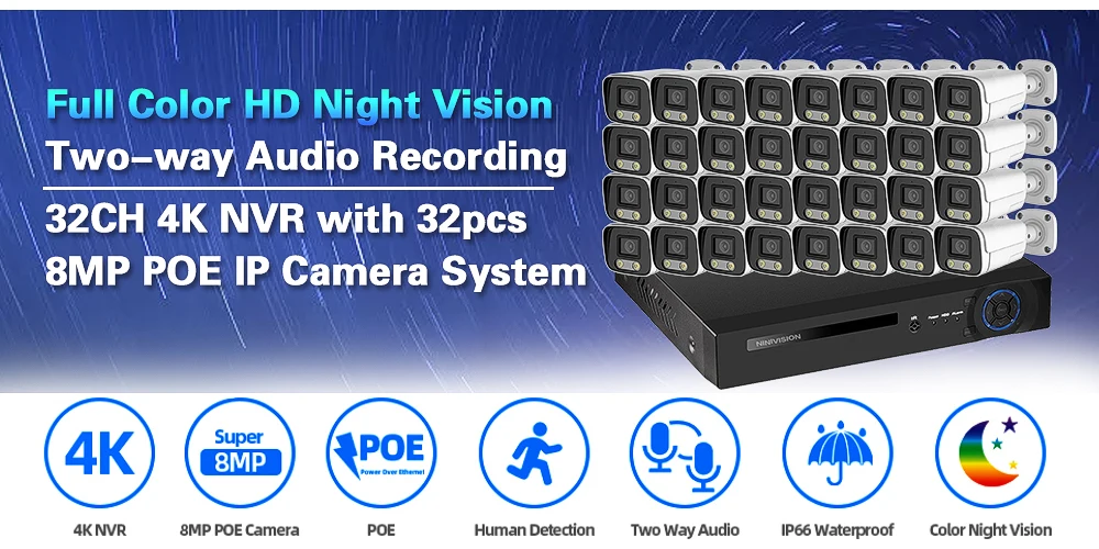1. Ультра HD 4K дисплей высокой четкости, NVR может поддерживать 8 МП и 4K max, вы можете подключить 720p,1080p,3mp,4mp ,5mp, камеры 8mp & 4k с нашим NVR;2. Ультра HD 8MP POE ip-камера, металлический материал, IP66 водонепроницаемый, подходит для внутреннего и наружного использования, надежная Домашняя безопасность;3. Наш NVR поддерживает распознавание лиц, воспроизведение лиц, обеспечивает ультра высокое разрешение видео наблюдения, обеспечивая максимальную детализацию и четкость в наличии;4. Наш NVR и камеры поддерживают расширенное H.265 Сжатие видео,5. Все камеры встроены в микрофон и динамик, Поддержка двусторонней аудиозаписи;6. Все камеры поддерживают Ultra HD Full Color Day Night Vision;7. Поддержка обнаружения движения, оповещения по электронной почте, воспроизведения видео и многоязычности;8. Поддержка Android,Iphone,Ipad,PC,VMS,P2P view;9. Удаленный доступ в любом месте, в любое время;