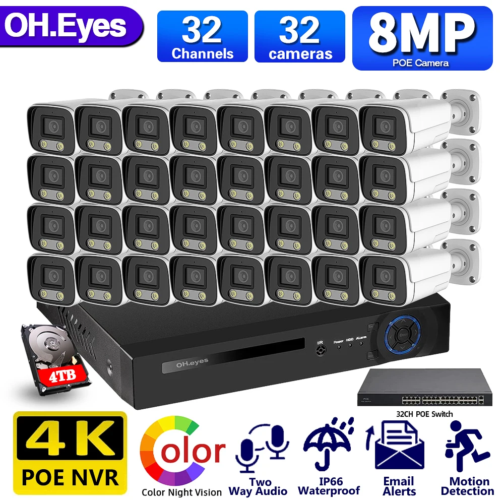 OH.eyes H.265 + 32CH 4K NVR kit 48V POE безопасность для помещений и улицы Двусторонняя аудио полноцветная Ночная IP камера система видеонаблюдения P2P