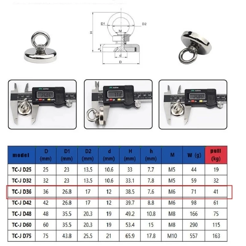 [Супер мощное натяжение]Этот рыболовный магнит диаметром 36 мм, имеет сильный неодимовый магнит для своей базы. Он может предложить сильную прочность при идеальных условиях, что делает вашу рыбалку проще.