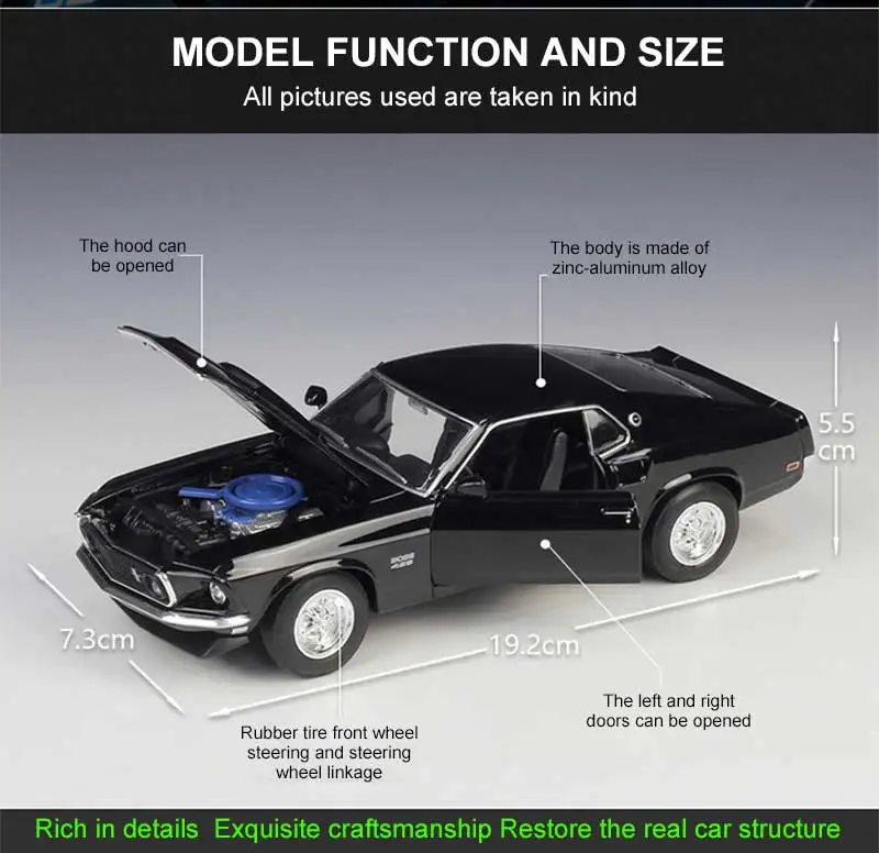 Welly 1:24 масштабная модель автомобиля игрушки 1969 Ford Mustang GT литой под давлением Автомобиль Металлический Игрушечный Автомобиль сплав модель автомобиля коллекция подарокОписание товара:
