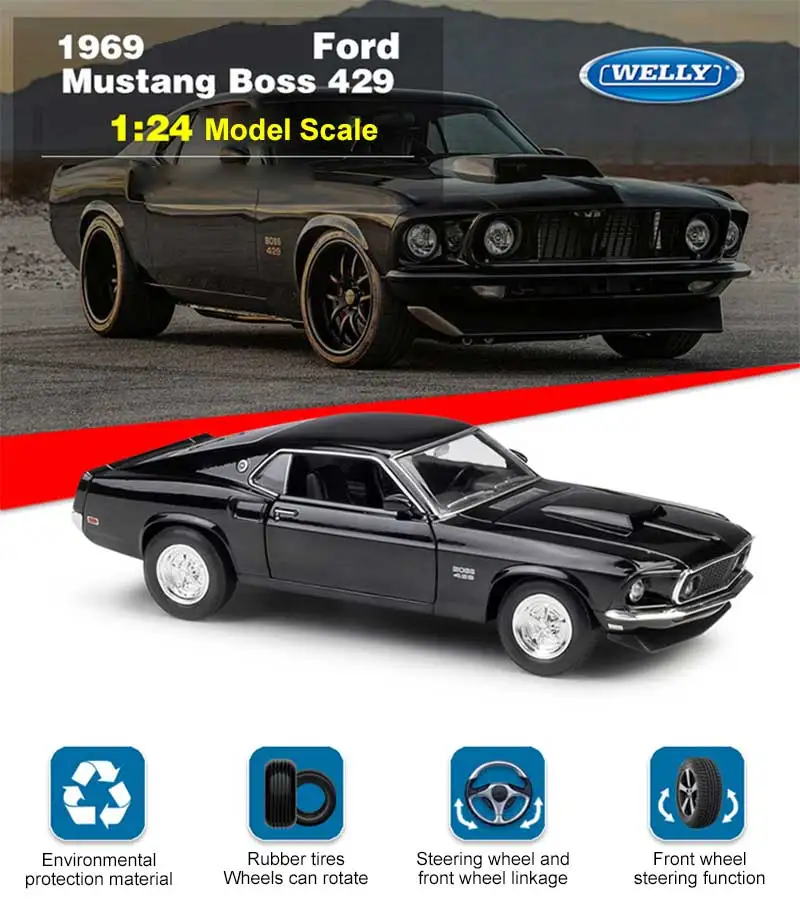 Модель автомобиля WELLY 1:24 1969 Ford Mustang BOSS 429 из сплава, ...
