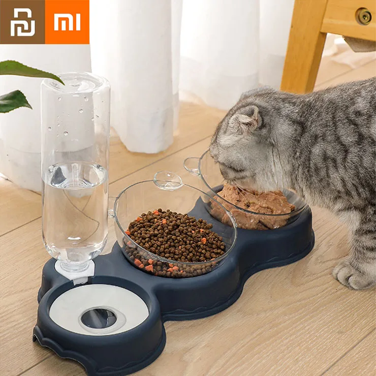 Автоматическая поилка для домашних животных Xiaomi, многофункциональная чаша двойного назначения с тремя чашами, защита от опрокидывания шеи, для кошек и собак