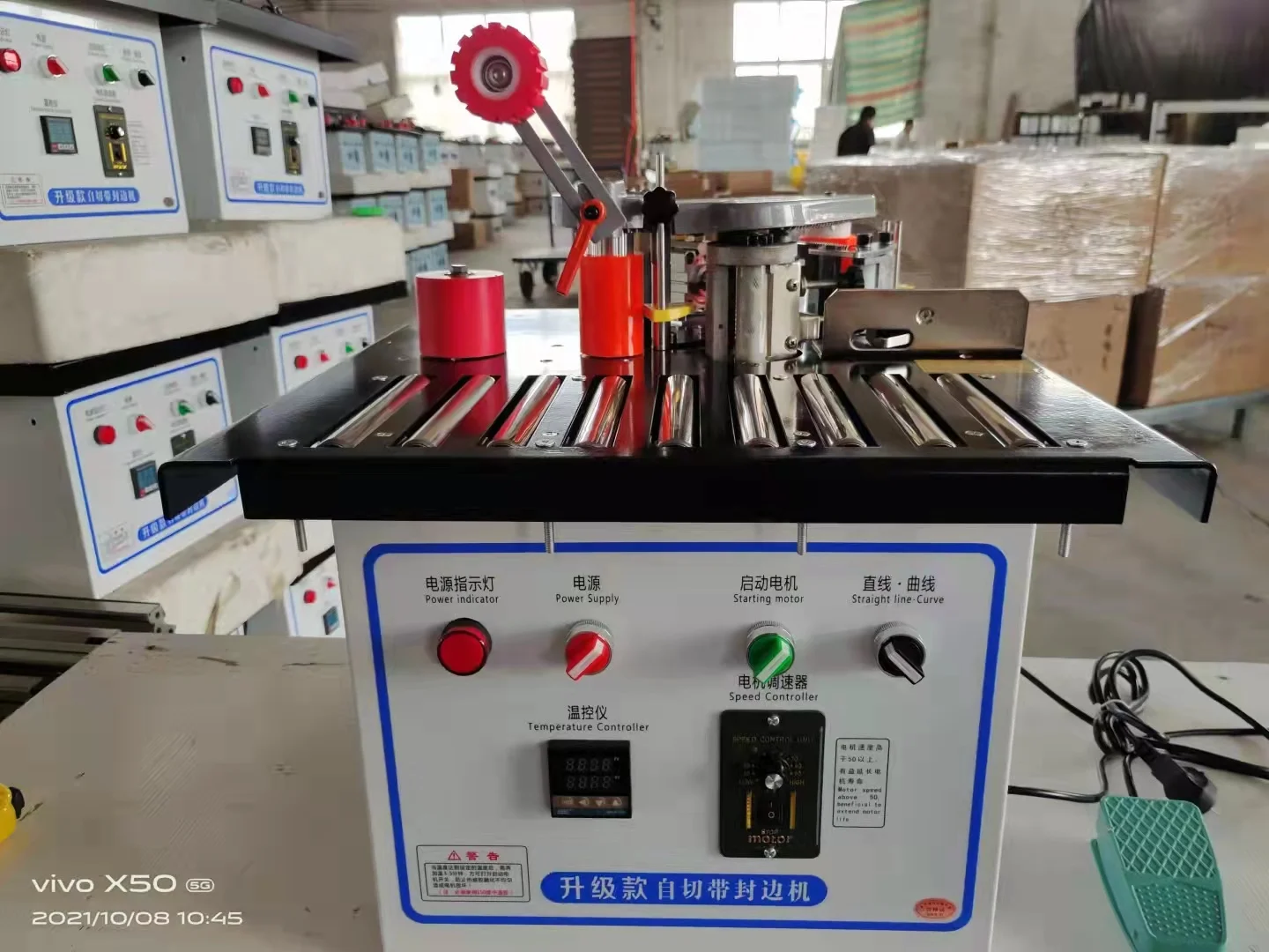 Деревообрабатывающий Кромкооблицовочный станок с контролем скорости, двойной цилиндр, мини-устройство для резки ПВХ, гибки, прямой Кромкооблицовочный станок
