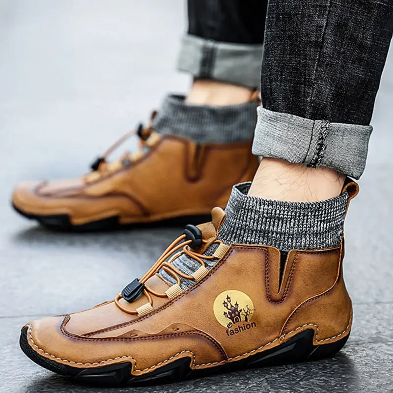 Мужские уличные легкие ботинки из микрофибры, повседневные кожаные ботинки с высоким берцем, большие размеры, осень 2021