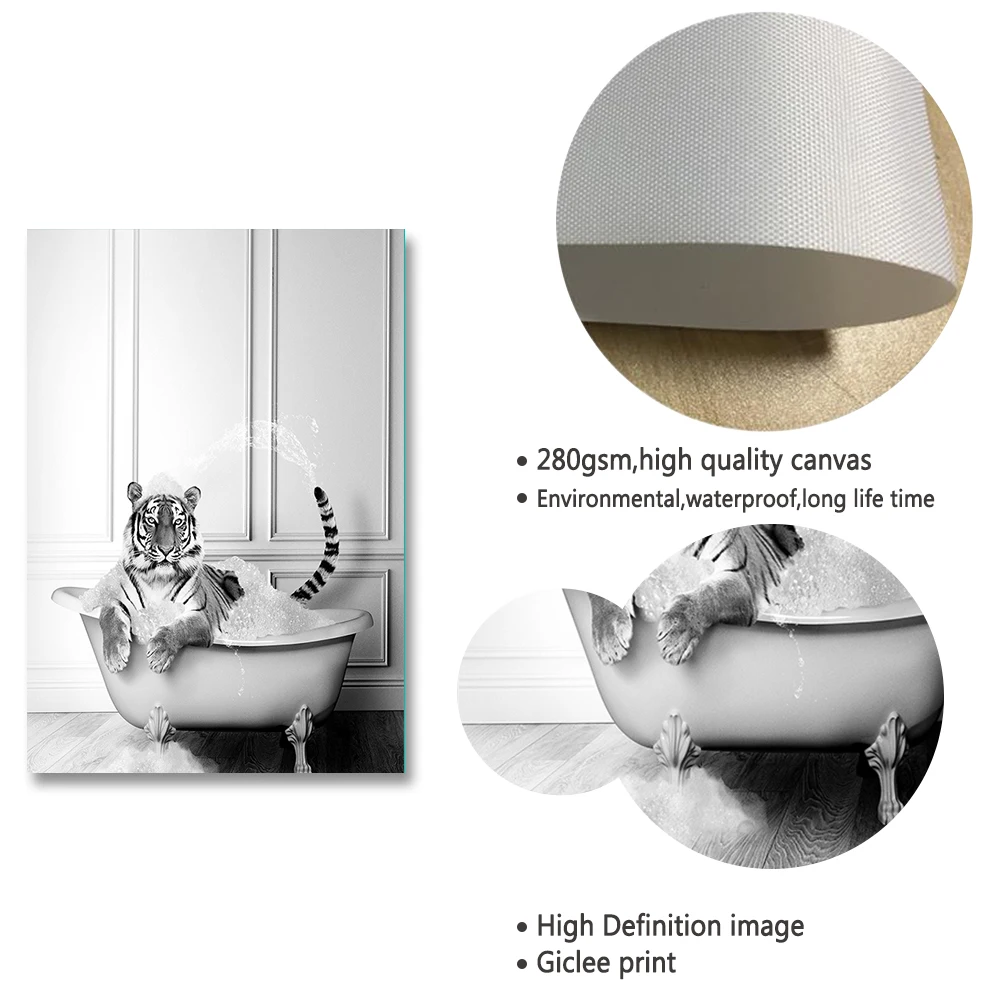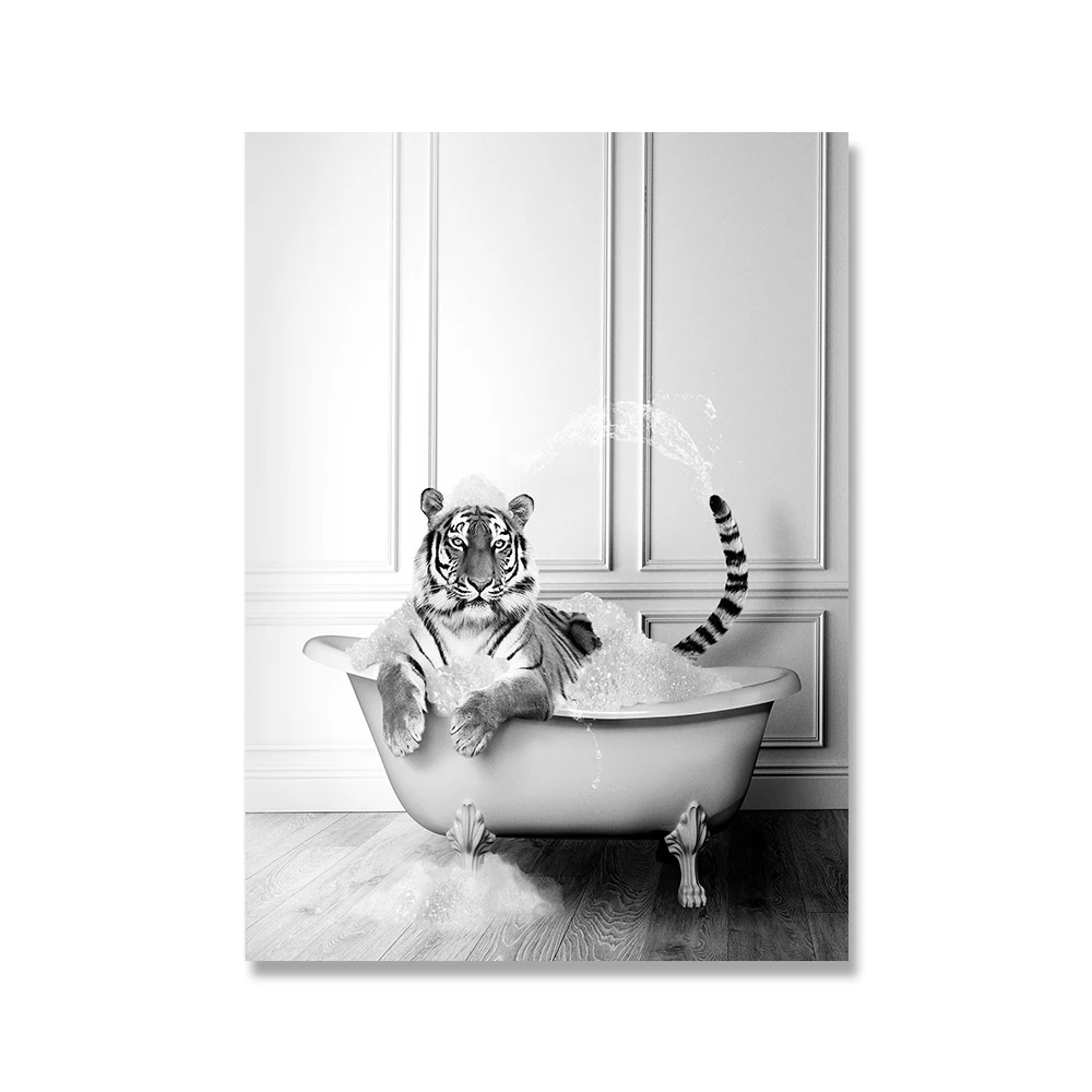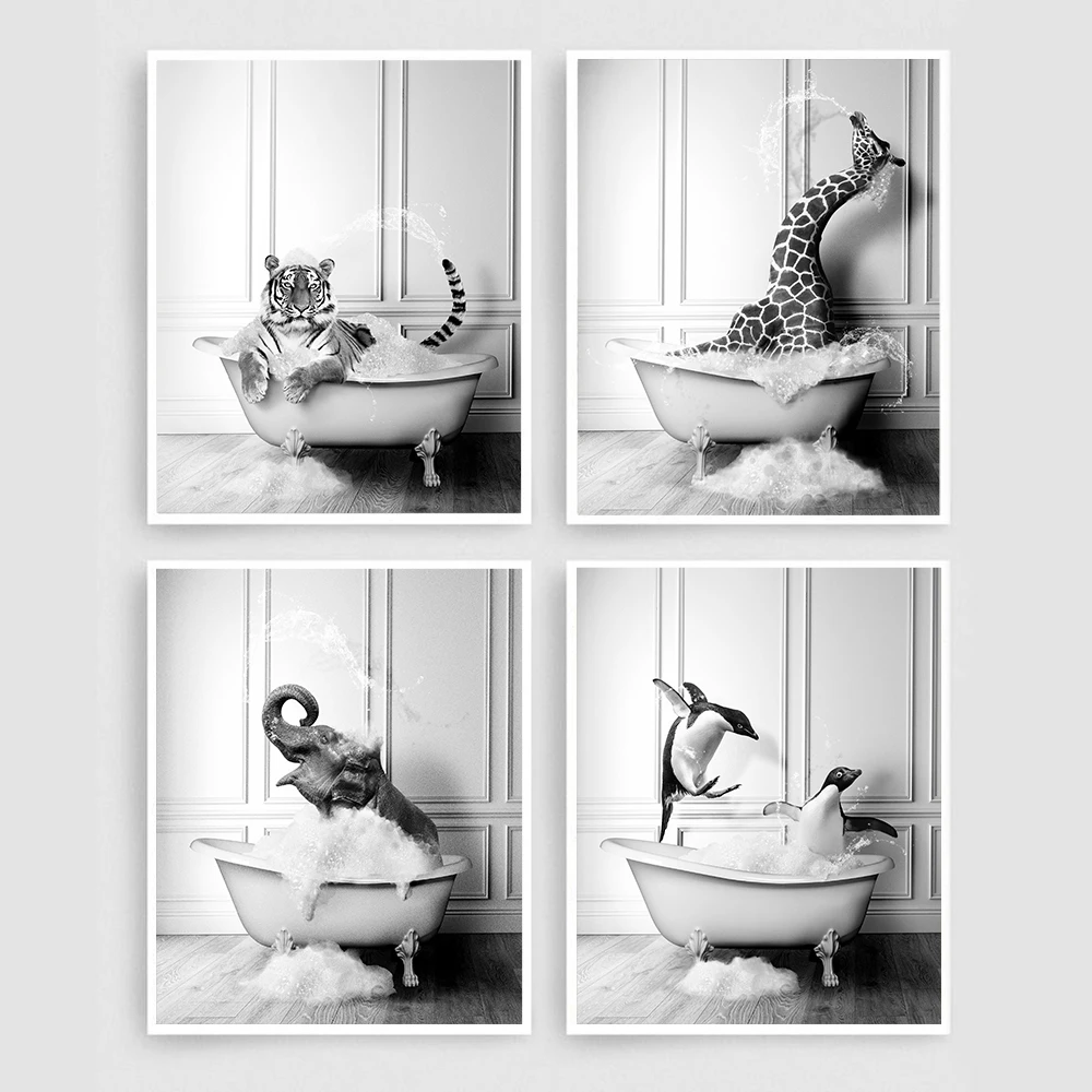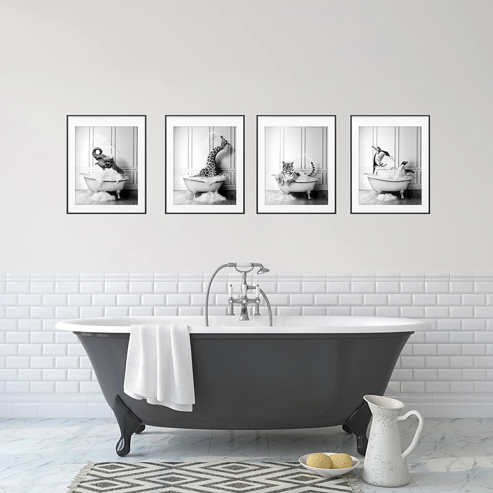 Декоративная картина для ванной комнаты, Постер для ванны в скандинавском стиле с животными, тигром, слоном, жирафом, пингвином, Картина на холсте, Настенная картина