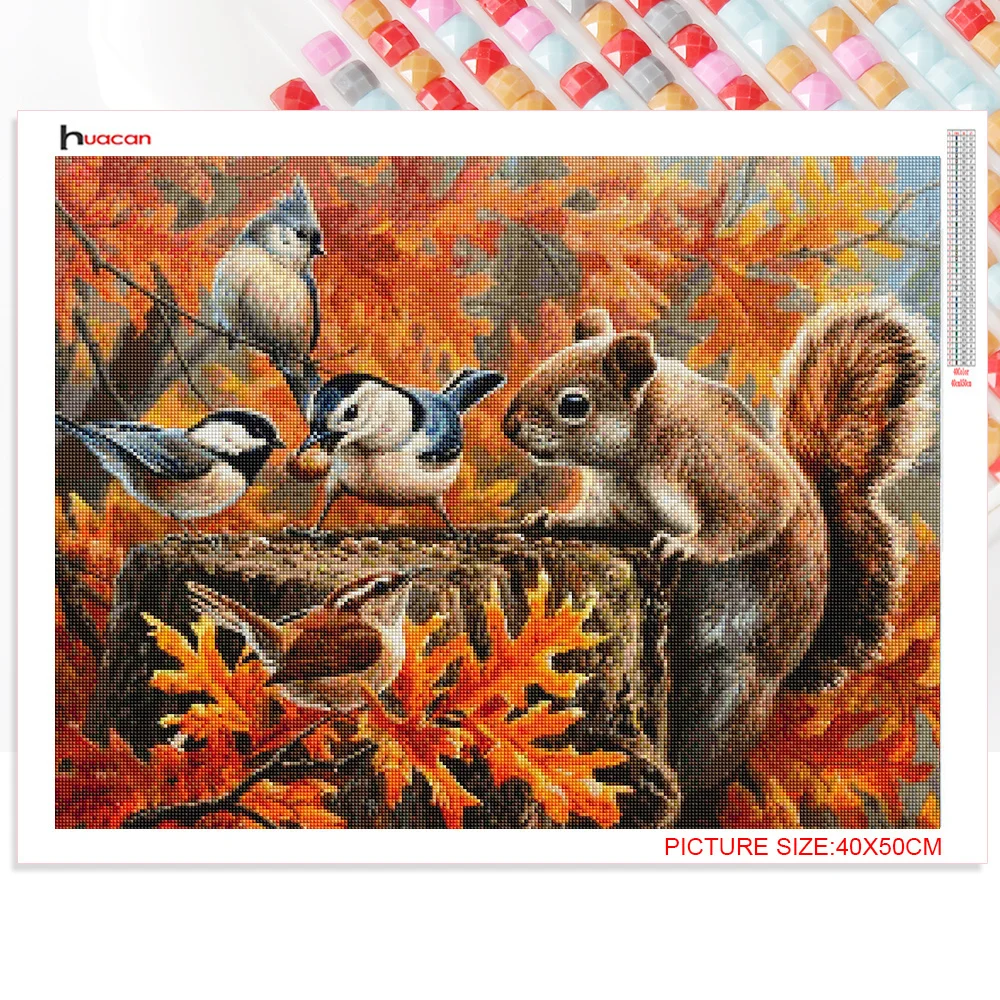 Алмазная 5D живопись Huacan, полный комплект белка, птица, мозаика, вышивка с животными, декоративное настенное украшение