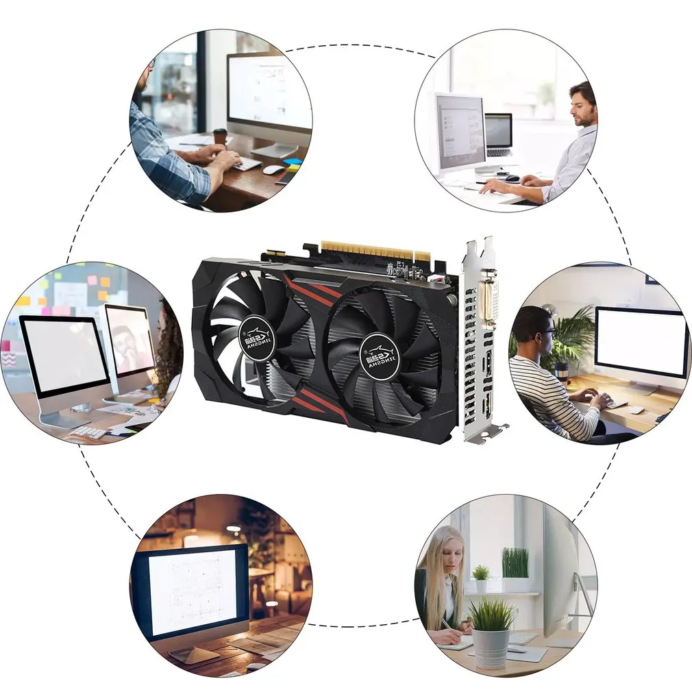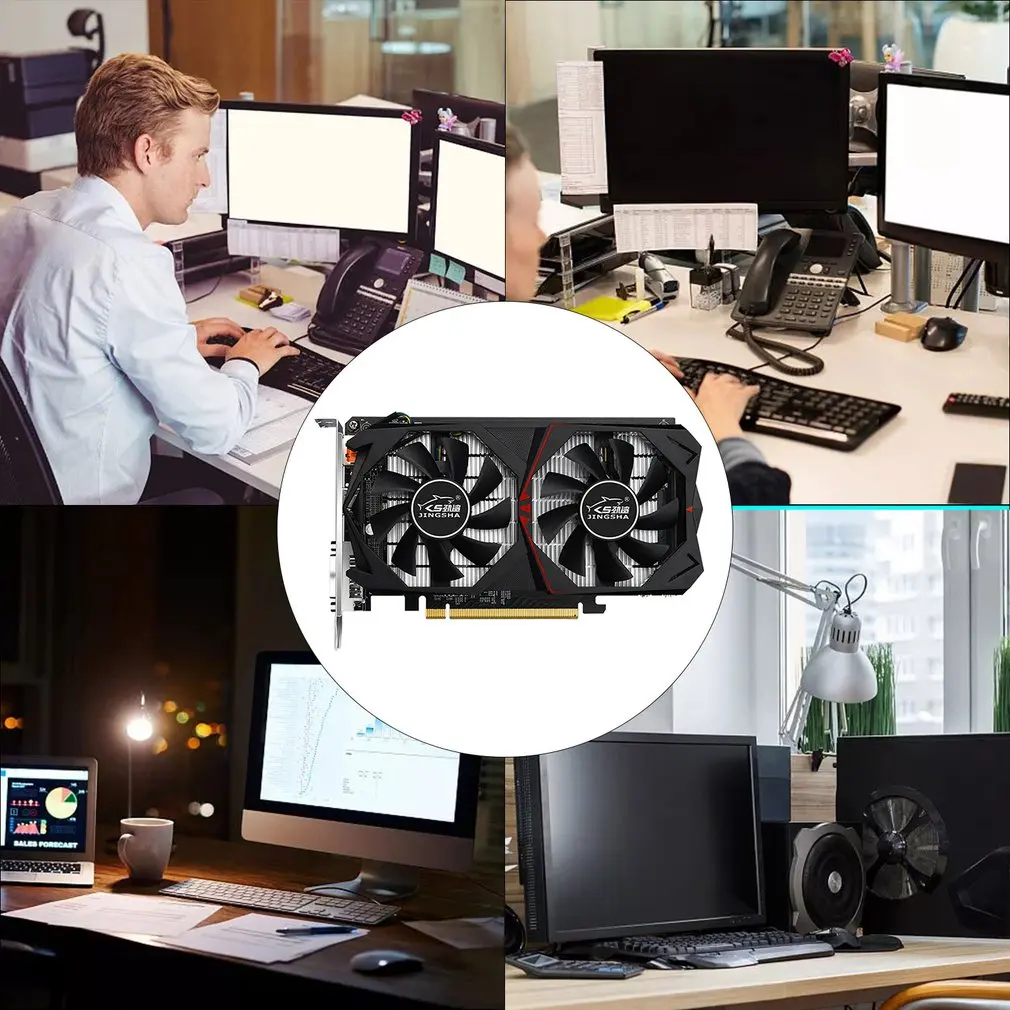 Особенности:1. Низкий уровень шума: эта компьютерная игровая видеокарта с бесшумным охлаждающим вентилятором имеет низкий уровень шума и может работать тихо.2. Стабильное использование: игровая видеокарта работает плавно и стабильно, что дает вам лучший игровой опыт.3. Премиум-Материал: Эта видеокарта изготовлена из прочного материала и хорошего отведения тепла, который очень подходит для использования на рабочем столе.4. Простота установки: установка очень удобна, дополнительные инструменты не требуются, и процесс установки очень прост.