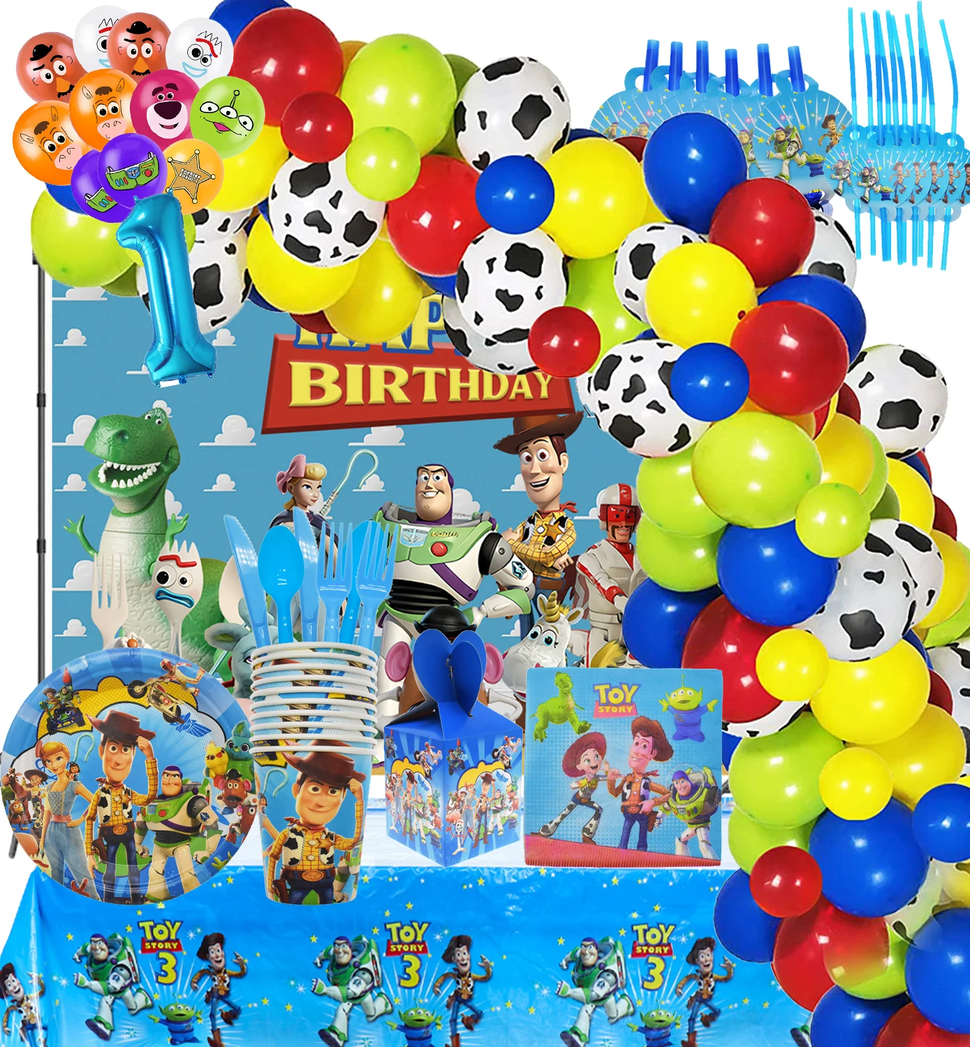 История игрушек, товары для дня рождения Вуди и Базз, баннер для торта, тарелки, чашки, фольгированный шар для детей, тематическая детская вечеринка