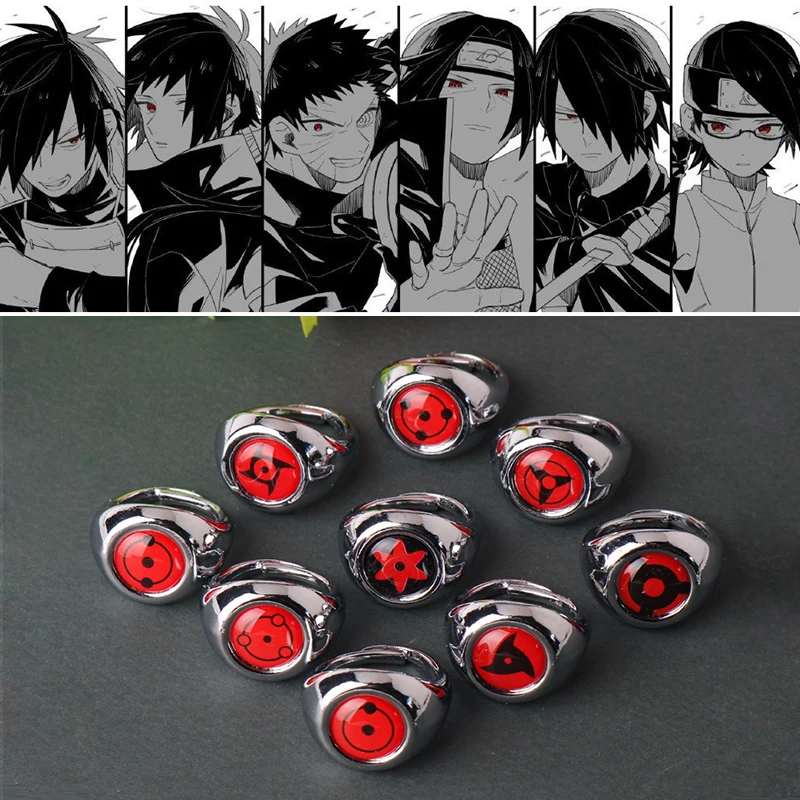 Кольцо Аниме Акацуки Шаринган для мужчин и женщин, ювелирное изделие для косплея Итачи, калейдоскопа, сглаза, 10 стилей, рождественский подарок для друзей
