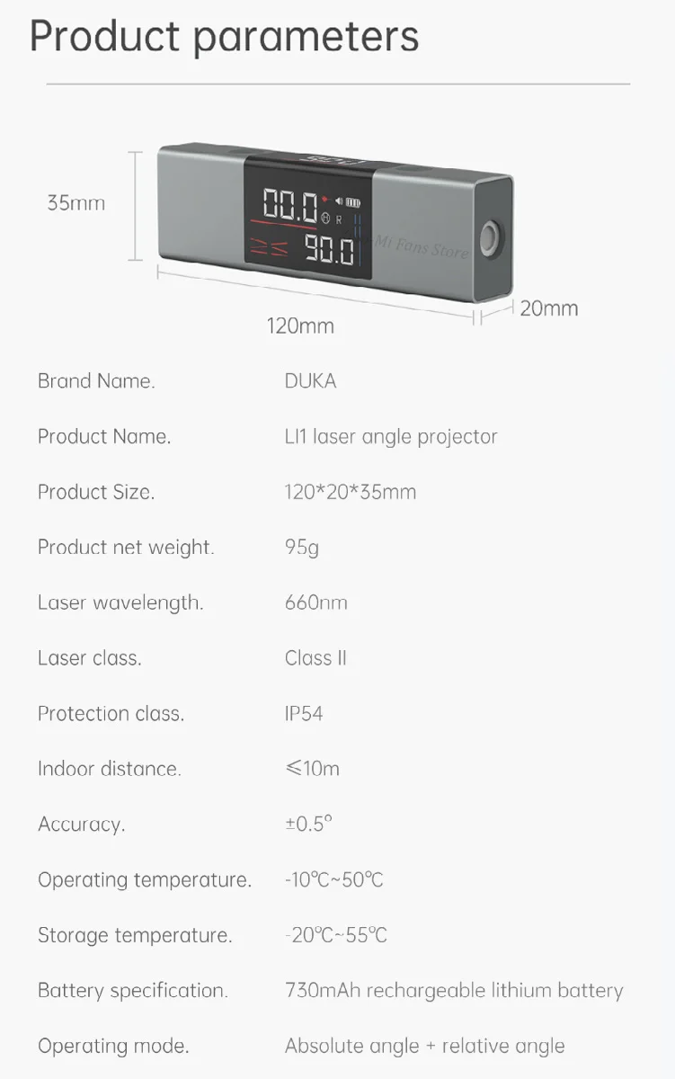 Лазерный угломер Duka LI1, цифровой, с зарядкой