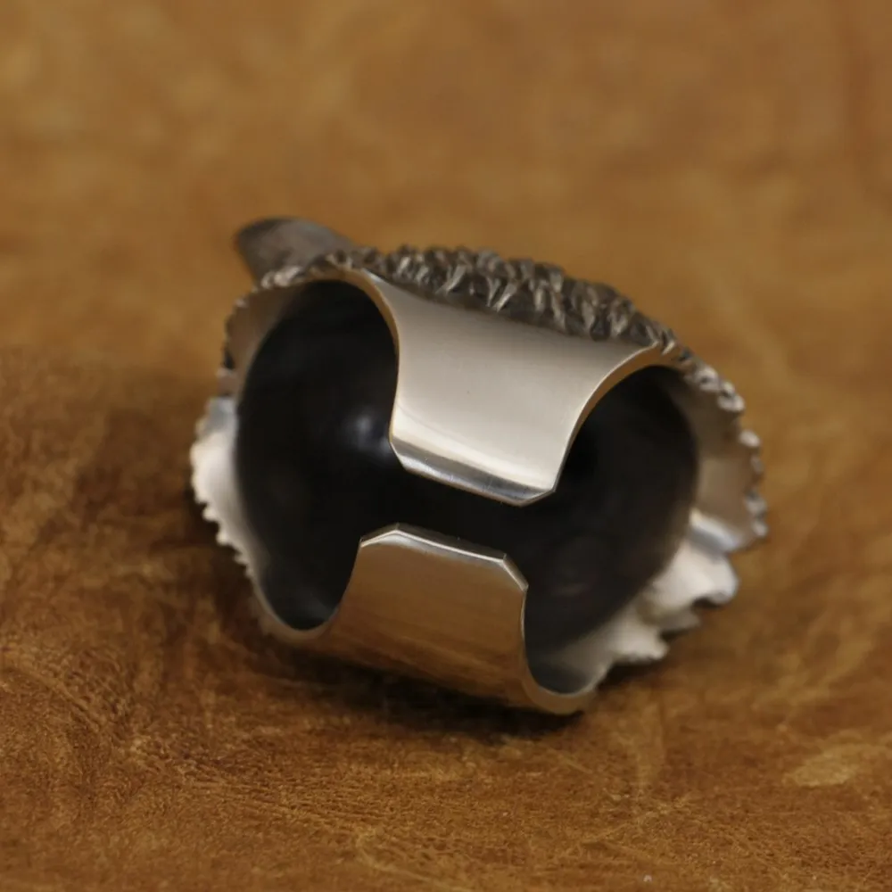 Это уникальное украшение станет прекрасным подарком для любого случая!Состояние:Новый и ручной работы в идеальной готовойМатериал:МельхиорВысота лица:Прибл. 36 ммВес:Прибл. 33ГраммыРазмер США:#7 ~ #15Примечание: