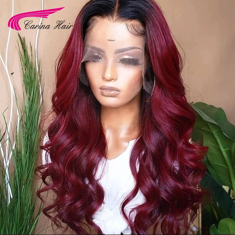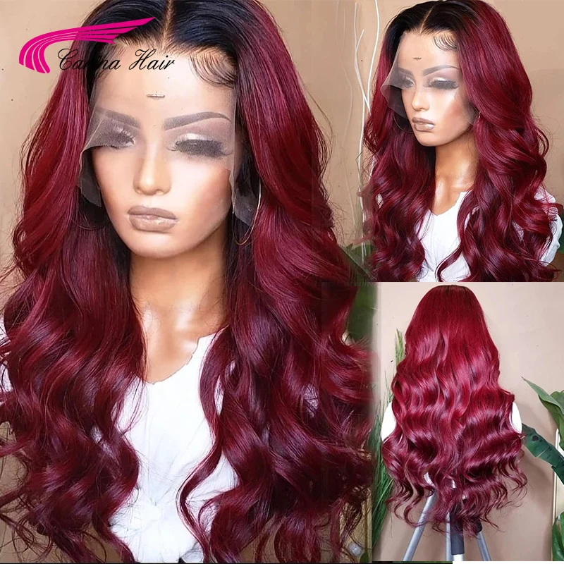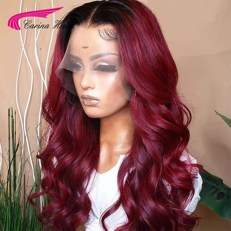 Ombre99J 13X 4 кружевной передний парик 4x4 бордовые прозрачные волнистые парики на сетке бразильские парики без повреждений из человеческих волос для женщин предварительно выщипанные