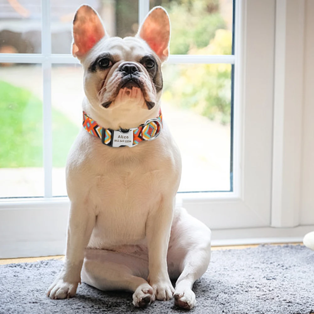 Персонализированный нейлоновый ошейник для собак, индивидуальный ошейник для домашних питомцев с гравировкой, идентификационная табличка с пряжкой для маленьких, средних, больших собак, питбуля, Мопса