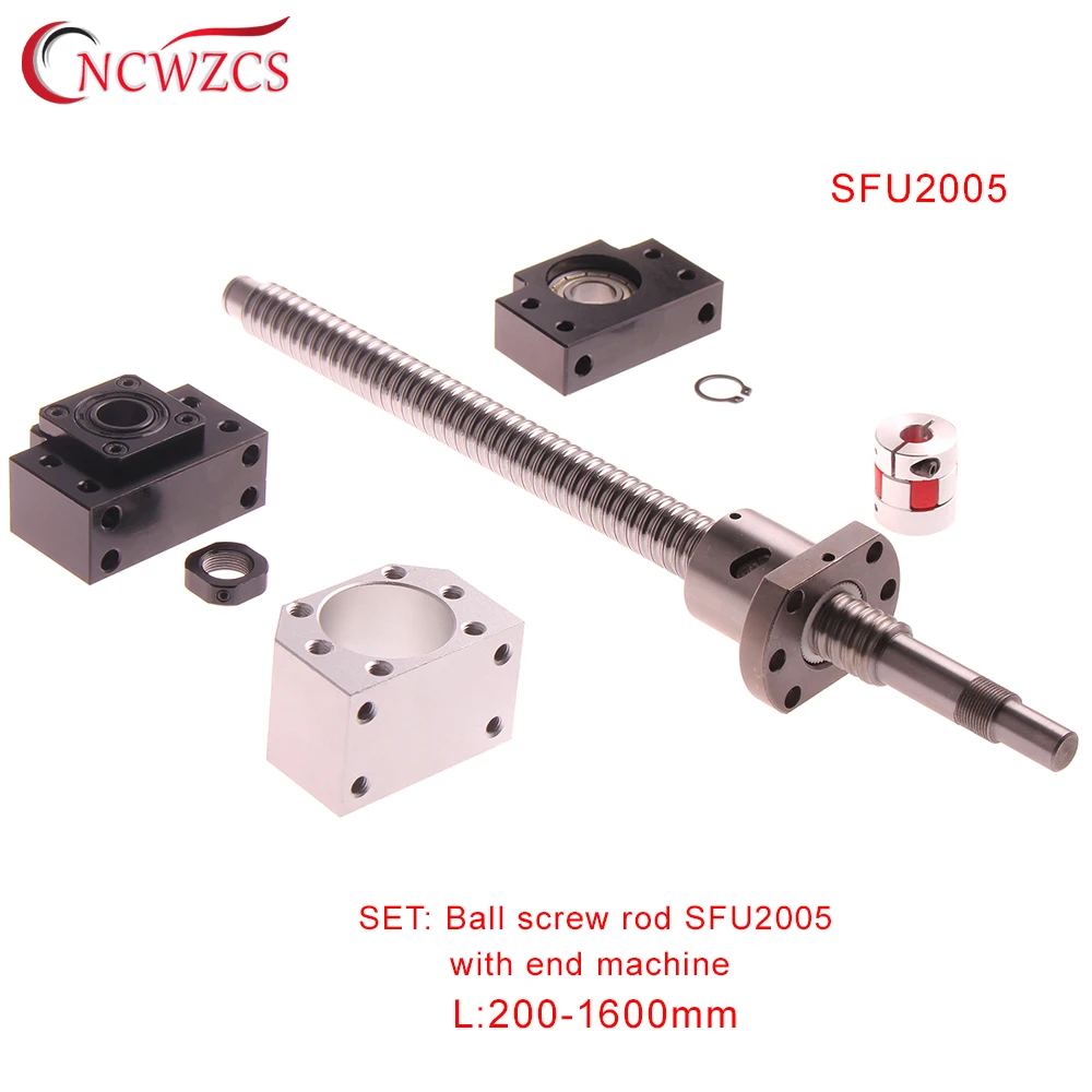 Комплект шариковых винтов SFU2005 200 300 1200 мм, шариковый винт с концевой обработкой + BK15BF15 Поддержка + муфта + шариковая гайка Корпус шариковый винт для ЧПУ